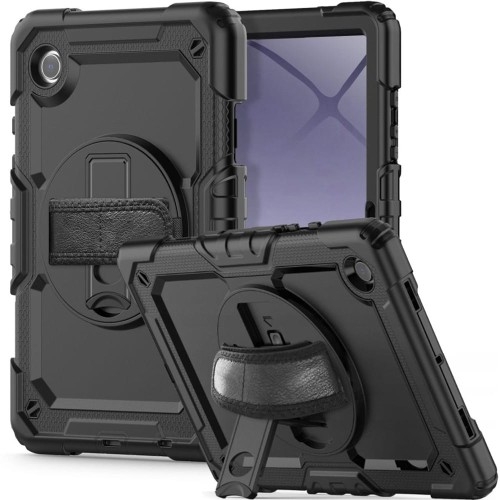 Etui Tech-Protect Solid360 Samsung Galaxy Tab A9 Plus 11.0 (X210 / X215 / X216) Ochrona 360 Pancerne etui od marki Tech-Protect z serii Solid360 wykonane zostało ze sztywnego poliwęglanu oraz matowego silikonu. Obudowa posiada zintegrowaną poliwęglanową osłonę na ekran o twardości 4H, a także niezwykle funkcjonalną podstawkę oraz smycz. Kolor producenta: Black (czarny) Przedmiotem sprzedaży jest samo etui, pozostałe akcesoria widoczne na zdjęciach służą jedynie przedstawieniu jego funkcjonalności. Doskonałe dopasowanie Pokrowiec skutecznie chroni urządzenie przed zarysowaniami i wstrząsami. Posiada także uszczelki zabezpieczające miejsca najbardziej narażone na kurz, piasek i wodę. Poliwęglanowa konstrukcja jest idealnie dopasowana i stabilnie przylega do urządzenia. Wbudowana podpórka Dzięki zintegrowanej podpórce z łatwością ułożysz swoje urządzenie w pozycji poziomej dla łatwiejszego przeglądania multimediów czy pisania.