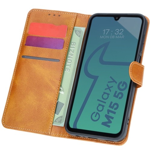 Etui Bizon Case PocketSamsung Galaxy M15 5G Etui z klapką do Samsung Galaxy M15 5GDenerwuje Cię gorączkowe poszukiwanie portfela, kiedy krzyczą z samochodu, że czas już ruszać? A może nie lubisz obciążać ekwipunku? Z pewnością przyda Ci się ta dodatkowa kieszeń!Etui z klapką marki Bizon z serii Pocket zbierze najważniejsze rzeczy w jedno miejsce i ochroni Twojego smartfona przed zabrudzeniami oraz zarysowaniami z każdej strony, dodatkowo minimalizując także ryzyko pozostawienia karty kredytowej czy dowodu w domu.Wykonane ze skóry ekologicznej i termoplastycznego poliuretanuChroni przed zarysowaniami, zabrudzeniami i zapominaniem ważnych dokumentów3 kieszenie na karty i jedna duża kieszeńMagnetyczne zamknięciePełne wycięcie na obiektywyZintegrowane osłony na przyciskiKompatybilne z ładowaniem indukcyjnymFunkcja podstawkiKolor producenta: Brown (brązowa klapka z czarnym etui)Etui kompatybilne ze szkłami* o wymiarach mniejszych niż (dług./szer.): 15,96 x 7,48 cm* Nie wiesz, jakie szkło będzie pasować? Wybierz Bizon Glass Clear!Przedmiotem sprzedaży jest samo etui, pozostałe akcesoria widoczne na zdjęciach służą jedynie przedstawieniu jego funkcjonalności. Elegancka konstrukcjaBoisz się, że po założeniu etui, smartfon zacznie sam klikać, a kiedy Ty będziesz chciał zwiększyć głośność, to strzeli na Ciebie focha i zamiast tego się wyłączy?Tak jest tylko na filmach. A Bizon Case Pocket, oprócz przemyślanej konstrukcji z połączenia TPU i skóry ekologicznej, cechuje się utrzymaną płynnością działania przycisków, które dodatkowo są zabezpieczone zintegrowanymi osłonami! Przyjemny w dotyku materiał zabezpiecza urządzenie z każdej strony, a ukryty w zamknięciu magnes nie pozwoli, aby klapka otworzyła się bez Twojej zgody.Etui posiada duże wycięcie na obiektywy, co oznacza, że nie będzie kolidował z osobną ochroną aparatu, dzięki czemu możesz wyposażyć swoje urządzenie w dodatkową osłonę, taką jak lens czy nakładka!Zdjęcie poglądowe, produkt może się różnić w zależności od modelu urządzenia Pomocna kieszeńKilka kart, jakiś dokument i banknot — przed wyruszeniem w drogę, należy zebrać drużynę, dlatego etui zostało wyposażone w praktyczne 3 kieszonki na karty płatnicze oraz jedną większą kieszeń na dokumenty lub banknoty.Zdjęcie poglądowe, produkt może się różnić w zależności od modelu urządzenia Funkcjonalna podstawkaMoże i nie nadaje się jako papier origami, ale odpowiednio złożony pokrowiec zamieni się w podstawkę, dzięki której wygodnie przeczytasz artykuł, zagrasz w grę czy obejrzysz odcinek serialu.Rozrywka poważnie nadszarpnęła baterię? Bez obaw, możesz ładować smartfona w etui, bo Pocket jest kompatybilny z ładowaniem indukcyjnym (tylko jeśli Twój telefon potrafi się ładować bezprzewodowo)! A jeśli ładujesz telefon tradycyjnie przez kabel, to pewnie ucieszy Cię informacja, że pokrowiec posiada wszelkie niezbędne wycięcia, dzięki którym możesz cieszyć się pełnym dostępem do portów.Zdjęcie poglądowe, produkt może się różnić w zależności od modelu urządzenia