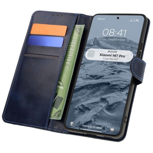 Etui Bizon Case PocketXiaomi 14T Pro Etui z klapką do Xiaomi 14T ProDenerwuje Cię gorączkowe poszukiwanie portfela, kiedy krzyczą z samochodu, że czas już ruszać? A może nie lubisz obciążać ekwipunku? Z pewnością przyda Ci się ta dodatkowa kieszeń!Etui z klapką marki Bizon z serii Pocket zbierze najważniejsze rzeczy w jedno miejsce i ochroni Twojego smartfona przed zabrudzeniami oraz zarysowaniami z każdej strony, dodatkowo minimalizując także ryzyko pozostawienia karty kredytowej czy dowodu w domu.Wykonane ze skóry ekologicznej i termoplastycznego poliuretanuChroni przed zarysowaniami, zabrudzeniami i zapominaniem ważnych dokumentów3 kieszenie na karty i jedna duża kieszeńMagnetyczne zamknięciePełne wycięcie na obiektywyZintegrowane osłony na przyciskiKompatybilne z ładowaniem indukcyjnymFunkcja podstawkiKolor producenta: Dark Blue (granatowa klapka z czarnym etui)Etui kompatybilne ze szkłami* o wymiarach mniejszych niż (dług./szer.): 15,98 x 7,13 cm* Nie wiesz, jakie szkło będzie pasować? Wybierz Bizon Glass Clear!Przedmiotem sprzedaży jest samo etui, pozostałe akcesoria widoczne na zdjęciach służą jedynie przedstawieniu jego funkcjonalności. Elegancka konstrukcjaBoisz się, że po założeniu etui, smartfon zacznie sam klikać, a kiedy Ty będziesz chciał zwiększyć głośność, to strzeli na Ciebie focha i zamiast tego się wyłączy?Tak jest tylko na filmach. A Bizon Case Pocket, oprócz przemyślanej konstrukcji z połączenia TPU i skóry ekologicznej, cechuje się utrzymaną płynnością działania przycisków, które dodatkowo są zabezpieczone zintegrowanymi osłonami! Przyjemny w dotyku materiał zabezpiecza urządzenie z każdej strony, a ukryty w zamknięciu magnes nie pozwoli, aby klapka otworzyła się bez Twojej zgody.Etui posiada duże wycięcie na obiektywy, co oznacza, że nie będzie kolidował z osobną ochroną aparatu, dzięki czemu możesz wyposażyć swoje urządzenie w dodatkową osłonę, taką jak lens czy nakładka!Zdjęcie poglądowe, produkt może się różnić w zależności od modelu urządzenia Pomocna kieszeńKilka kart, jakiś dokument i banknot — przed wyruszeniem w drogę, należy zebrać drużynę, dlatego etui zostało wyposażone w praktyczne 3 kieszonki na karty płatnicze oraz jedną większą kieszeń na dokumenty lub banknoty.Zdjęcie poglądowe, produkt może się różnić w zależności od modelu urządzenia Funkcjonalna podstawkaMoże i nie nadaje się jako papier origami, ale odpowiednio złożony pokrowiec zamieni się w podstawkę, dzięki której wygodnie przeczytasz artykuł, zagrasz w grę czy obejrzysz odcinek serialu.Rozrywka poważnie nadszarpnęła baterię? Bez obaw, możesz ładować smartfona w etui, bo Pocket jest kompatybilny z ładowaniem indukcyjnym (tylko jeśli Twój telefon potrafi się ładować bezprzewodowo)! A jeśli ładujesz telefon tradycyjnie przez kabel, to pewnie ucieszy Cię informacja, że pokrowiec posiada wszelkie niezbędne wycięcia, dzięki którym możesz cieszyć się pełnym dostępem do portów.Zdjęcie poglądowe, produkt może się różnić w zależności od modelu urządzenia