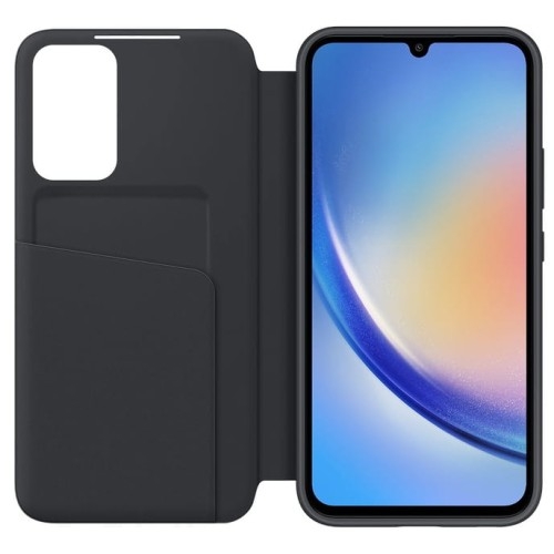 Etui Samsung Smart View Wallet Case Samsung Galaxy A34 5G Wykonanie świetnej jakości Oryginalne etui od marki Samsung z serii Smart View Wallet Case wykonane z wysokiej jakości materiałów, o pięknym i minimalistycznym wyglądzie. Dzięki specjalnej matowej powłoce na pleckach i bokach nie musisz się martwić o pozostające na powierzchni odciski palców. Cover w przypadku drobnych rys regeneruje swą powierzchnię. Kolor producenta: Black (czarna) Etui kompatybilne ze szkłami o wymiarach nieprzekraczających (dług./szer./przek.): 15,77 x 7,46 x 16,74 cm Okno na świat Futerał jest niezwykle funkcjonalny. Dzięki specjalnej, aktywnej klapce odbierzesz połączenie lub sprawdzisz podstawowe informacje bez jej otwierania, dzięki minimalistycznemu wycięciu na brzegu wyświetlacza. Pozwala ona także na wybudzanie i usypianie urządzenia podczas jej otwierania i zamykania. Świetne dopasowanie Doskonale dopasowane do urządzenia, posiada wycięcie na głośnik na przedniej klapie, dzięki czemu można prowadzić rozmowy telefoniczne przy zamkniętym pokrowcu. Co więcej, Smart View Wallet Case posiada dedykowane miejsce na kartę, dzięki czemu możesz mieć ją zawsze pod ręką, przechowując ją przy tym w bezpiecznym miejscu. Precyzyjne wycięcia Pokrowiec z klapką zapewnia swobodny dostęp do wszystkich interfejsów. Dodatkowo chroni telefon wraz z wyświetlaczem przed zarysowaniami i zabrudzeniem. Futerał jest częściowo wykonany z materiałów pochodzących z recyklingu z certyfikatem UL, oszczędzając cenne zasoby ziemskie.