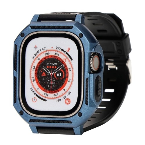 Bizon Strap + Case Watch ArmorApple Watch Ultra 2 / 1 (49 mm) Zapobiegnij serii niefortunnych zdarzeńKto powiedział, że zbroje były tylko w średniowieczu?Pancerne etui z paskiem do zegarka od producenta Bizon z serii Strap + Case Watch Armor zapewni wzmocnioną ochronę Twojemu smartwatchowi i przyjmie na klatę codzienne przeciwności losu, takie jak wstrząsy wywołane intensywnym wymachiwaniem mieczem czy pojedynek z ostrą krawędzią stołu.Kolor producenta: Dark BlueDługość / szerokość paska: 118,1 + 90,6 x 21,8 mm Pancerne etui z paskiem do zegarka wyreżyserowane przez BizonaBoisz się, że po założeniu osłony, smartwatch będzie za mocno ściśnięty przez obudowę, zagotuje się i zacznie Cię oszukiwać, która jest godzina, a pasek się zbuntuje i będzie się sam odpinał?Tak jest tylko na filmach. A Bizon Strap + Case Watch Armor, oprócz warstwowej, hybrydowej konstrukcji, która doda +40% do odporności na obrażenia od potworów, cechuje się idealnym dopasowaniem do zegarka! Gwarancją wygodnego noszenia jest regulowany pasek z elastycznego poliuretanu, z kolei ramka z twardego plastiku, w środku której znajduje się dodatkowa, zdejmowana część z termoplastycznego poliuretanu, otoczy urządzenie i zabezpieczy je w razie wstrząsów. Aplikacja i funkcjonalność bez zastrzeżeńZachowaj możliwość swobodnego korzystania z zegarka! Etui w żaden sposób nie zakłóca jego funkcjonalności, a sam montaż nie sprawi Ci większych problemów niż wytworzenie podstawowej mikstury leczniczej — po prostu wciśnij zegarek w otwór i gotowe, od tej pory urządzenie solidnie siedzi w obudowie, a Ty możesz być spokojny o bezpieczeństwo Twojego smartwatcha i ruszać do walki!* Jeśli zegarek ma fizyczne przyciski, zaleca się rozpocząć montaż od strony, na której się one znajdują, tak aby uniknąć wciskania ich na siłę.