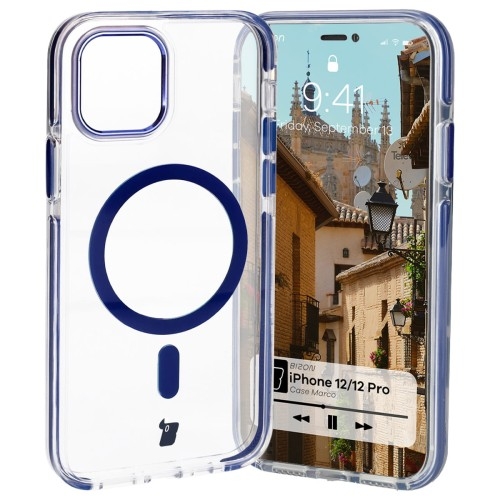 Etui z pierścieniem magnetycznym Bizon Case MarcoApple iPhone 12 ProApple iPhone 12 Przebojowe etui do Apple iPhone 12 Pro / 12Komu w drogę, temu Marco! Marco to nie tylko ramka po hiszpańsku, to także etui marki Bizon! Wyobraź sobie, że wyruszasz w podróż życia, ale zamiast jedwabnych szlaków, przemierzasz miejskie dżungle i biurowe korytarze. To etui to doskonały kompan dla współczesnego odkrywcy — ochroni Twojego smartfona w codziennych sytuacjach, takich jak nieudany rzut telefonem na łóżko czy wstrząsy w plecaku podczas porannego biegu do pracy, jednocześnie pozostając stylowym i eleganckim dodatkiem, niczym żaglowiec na otwartym morzu. Ahoj!Elastyczna ramka z TPU i twarde plecki z akryluOchrona przed zarysowaniami, zabrudzeniami i w razie upadkuRamka absorbująca wstrząsyOdporność na żółknięcieZintegrowane osłony na przyciskiPodwyższone krawędzie ekranu i aparatuPełne wycięcie na obiektywyPowłoka odporna na odciski palcówWbudowany pierścień magnetycznyKolor producenta: Blue (przezroczyste plecki z niebieskimi akcentami)Etui kompatybilne ze szkłami* o wymiarach mniejszych niż (dług./szer.): 14,58 x 7,07 cm* Nie wiesz, jakie szkło będzie pasować? Wybierz Bizon Glass Clear!Przedmiotem sprzedaży jest samo etui, pozostałe akcesoria widoczne na zdjęciach służą jedynie przedstawieniu jego funkcjonalności. Hybrydowa budowaBoisz się, że po założeniu etui, smartfon zacznie sam klikać, a kiedy Ty będziesz chciał zwiększyć głośność, to strzeli na Ciebie focha i zacznie krzyczeć po włosku?Tak jest tylko w bajkach. A Bizon Case Marco, oprócz hybrydowej konstrukcji, na którą składa się ramka z TPU oraz twarde plecki z akrylu, cechuje się utrzymaną płynnością działania przycisków, które dodatkowo są zabezpieczone zintegrowanymi osłonami! Materiał znajdujący się na pleckach wyróżnia się powłoką, na której nie pozostają odciski palców, dzięki czemu Twój telefon pozostanie czysty i będzie łapał spojrzenia wszystkich przydrożnych kupców.Pokrowiec posiada wszelkie niezbędne wycięcia, dzięki którym możesz cieszyć się pełnym dostępem do portów. Aparat w pełni bezpieczeństwaPełne wycięcie na obiektywy w połączeniu z podwyższonymi krawędziami dodatkowo zabezpieczy soczewki na płaskiej powierzchni, dzięki czemu Twój aparat będzie chroniony przed niechcianymi zarysowaniami. Takie rozwiązanie nie koliduje z osobną ochroną aparatu, dzięki czemu możesz wyposażyć swoje urządzenie w dodatkową nakładkę! Wzmożone środki ochronyWarto patrzeć pod nogi, jednak każdy podróżnik kiedyś w końcu się potknie, dlatego Bizon Case Marco został wyposażony w dodatkową amortyzację – elastyczne ścianki wewnętrzne, które skutecznie zaabsorbują Twój szok i impet uderzenia urządzenia o powierzchnię. Etui spełnia, a nawet przewyższa wymogi Military Grade, dzięki czemu możesz być spokojny o bezpieczeństwo swojego telefonu!Obudowa posiada także lekko podwyższone ranty przy ekranie, dzięki którym Twój wyświetlacz będzie dodatkowo zabezpieczony podczas odkładania telefonu ekranem w dół. Kolor, który dobrze się nosiZa górami, za lasami, gdzieś na strychu, rzucone w kąt leży nie tak dawno kupione, zżółknięte etui, które z niegdyś czystym wyglądem nie ma już nic wspólnego...To nie jest scenariusz dla Marco! Materiał, z którego został wykonany, zapewnia nie tylko zwiększoną odporność na odciski palców, ale także niezwykłą trwałość i odporność na żółknięcie!Zdjęcie poglądowe, ukazujące odporność na odciski palców Magnetyczna siłaNastąpił niespodziewany zwrot akcji, musisz działać szybko, a ty plączesz się w przewodach? Wbudowany pierścień magnetyczny wyprowadzi Cię z opresji! To niepozorne kółko zapewnia kompatybilność z akcesoriami MagSafe*, takimi jak magnetyczne kieszonki na karty czy uchwyty z MagSafe.* Ładowarki bezprzewodowe z MagSafe działają wyłącznie z kompatybilnymi urządzeniami. Założenie etui na smartfona, który nie posiada tej funkcjonalności, nie sprawi, że telefon nagle odblokuje nową moc ładowania bezprzewodowego.