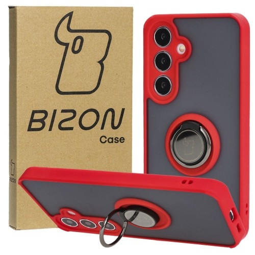 Etui z uchwytem na palec Bizon Case Hybrid RingSamsung Galaxy S24 Trzymaj się z etui do Samsung Galaxy S24Czy to ten jedyny?Etui z ringiem marki Bizon z serii Hybrid Ring może i nie uczyni Cię niewidzialnym niczym pewien słynny pierścień i raczej nie zostanie też uznany za pierścionek zaręczynowy, ale za to ochroni Twojego smartfona przed zabrudzeniami, zarysowaniami oraz zminimalizuje ryzyko przypadkowego upadku podczas szaleńczego biegu na pociąg, który zaraz odjedzie, kiedy Ty jeszcze finalizujesz zakup biletów online.Kolor producenta: Red (przydymione plecki z czerwoną ramką)Etui kompatybilne ze szkłami* o wymiarach mniejszych niż (dług./szer.): 14,63 x 6,95 cm* Przy doborze ochrony ekranu zwróć uwagę, aby szkło było mniejsze niż wymiary wewnętrzne pokrowca. Jeśli się wahasz, szkło Bizon Glass Clear jest bezpiecznym wyborem.Przedmiotem sprzedaży jest samo etui, pozostałe akcesoria widoczne na zdjęciach służą jedynie przedstawieniu jego funkcjonalności.Uwaga! Etui z serii Bizon Case Hybrid Ring posiada folię ochronną w środkowej części ringu. Możliwe, widoczne rysy znajdują się na folii, a nie na produkcie. Matowe pleckiBizon Hybrid Ring to hybrydowa konstrukcja składająca się z elastycznej ramki z TPU i twardych, poliwęglanowych plecków. Case wyróżnia się matowym tyłem o półprzeźroczystym wykończeniu, a kontrastowe kolory nadają całości charakteru.Zdjęcie poglądowe, produkt może się różnić w zależności od modelu urządzenia Płynność i ochrona ponad wszystkoBoisz się, że po założeniu etui, smartfon zacznie sam klikać, a kiedy Ty będziesz chciał zwiększyć głośność, to strzeli na Ciebie focha i zamiast tego się wyłączy?Tak jest tylko na filmach. A Bizon Case Hybrid Ring cechuje się utrzymaną płynnością działania przycisków! Podwyższone krawędzie przy ekranie dodatkowo go zabezpieczą podczas odkładania urządzenia wyświetlaczem do dołu, a antypoślizgowa, wewnętrzna strona ramki będzie mocno przylegać do urządzenia.Zdjęcie poglądowe, produkt może się różnić w zależności od modelu urządzenia Aparat w pełni bezpieczeństwaPodwyższone krawędzie dodatkowo zabezpieczą soczewki na płaskiej powierzchni, dzięki czemu Twój aparat będzie chroniony przed niechcianymi zarysowaniami!Zdjęcie poglądowe, produkt może się różnić w zależności od modelu urządzenia Swobodny dostępEtui jest idealnie dopasowane do telefonu i posiada wszelkie niezbędne wycięcia, dzięki którym możesz cieszyć się pełnym dostępem do portów! Obudowa cechuje się także zintegrowanymi osłonami na przyciski, które dodatkowo zabezpieczą je przed dostaniem się brudu i kurzu do środka, nie zakłócając przy tym ich normalnego działania.W obliczu zagrożenia nie chwytaj się brzytwy, a specjalnego uchwytu!Bizon Hybrid Ring posiada wycięcie służące do przypięcia smyczki, która oprócz funkcji estetycznej będzie istnym zbawieniem, gdy telefon wyślizgnie Ci się z dłoni.* Smycz nie jest dołączona do zestawu.Zdjęcie poglądowe, produkt może się różnić w zależności od modelu urządzenia Obrotowy uchwyt na palecEtui zostało wyposażone w obrotowy ring na palec, który przede wszystkim pozwala na bezpieczne trzymanie smartfona w dłoni, dlatego koniec z telefonem lądującym na twarzy, bo zdrętwiała Ci ręka!Uchwyt może także zamienić się w podstawkę, dzięki której wygodnie przeczytasz artykuł czy obejrzysz odcinek serialu, z kolei magnetyczna właściwość wbudowanej w pierścień blaszki zapewnia kompatybilność z uchwytami magnetycznymi.Zdjęcie poglądowe, produkt może się różnić w zależności od modelu urządzenia
