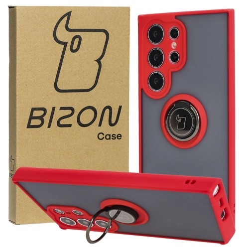 Etui z uchwytem na palec Bizon Case Hybrid RingSamsung Galaxy S24 Ultra Trzymaj się z etui do Samsung Galaxy S24 UltraCzy to ten jedyny?Etui z ringiem marki Bizon z serii Hybrid Ring może i nie uczyni Cię niewidzialnym niczym pewien słynny pierścień i raczej nie zostanie też uznany za pierścionek zaręczynowy, ale za to ochroni Twojego smartfona przed zabrudzeniami, zarysowaniami oraz zminimalizuje ryzyko przypadkowego upadku podczas szaleńczego biegu na pociąg, który zaraz odjedzie, kiedy Ty jeszcze finalizujesz zakup biletów online.Kolor producenta: Red (przydymione plecki z czerwoną ramką)Etui kompatybilne ze szkłami* o wymiarach mniejszych niż (dług./szer.): 16,04 x 7,61 cm* Przy doborze ochrony ekranu zwróć uwagę, aby szkło było mniejsze niż wymiary wewnętrzne pokrowca. Jeśli się wahasz, szkło Bizon Glass Clear jest bezpiecznym wyborem.Przedmiotem sprzedaży jest samo etui, pozostałe akcesoria widoczne na zdjęciach służą jedynie przedstawieniu jego funkcjonalności.Uwaga! Etui z serii Bizon Case Hybrid Ring posiada folię ochronną w środkowej części ringu. Możliwe, widoczne rysy znajdują się na folii, a nie na produkcie. Matowe pleckiBizon Hybrid Ring to hybrydowa konstrukcja składająca się z elastycznej ramki z TPU i twardych, poliwęglanowych plecków. Case wyróżnia się matowym tyłem o półprzeźroczystym wykończeniu, a kontrastowe kolory nadają całości charakteru.Zdjęcie poglądowe, produkt może się różnić w zależności od modelu urządzenia Płynność i ochrona ponad wszystkoBoisz się, że po założeniu etui, smartfon zacznie sam klikać, a kiedy Ty będziesz chciał zwiększyć głośność, to strzeli na Ciebie focha i zamiast tego się wyłączy?Tak jest tylko na filmach. A Bizon Case Hybrid Ring cechuje się utrzymaną płynnością działania przycisków! Podwyższone krawędzie przy ekranie dodatkowo go zabezpieczą podczas odkładania urządzenia wyświetlaczem do dołu, a antypoślizgowa, wewnętrzna strona ramki będzie mocno przylegać do urządzenia.Zdjęcie poglądowe, produkt może się różnić w zależności od modelu urządzenia Aparat w pełni bezpieczeństwaPodwyższone krawędzie dodatkowo zabezpieczą soczewki na płaskiej powierzchni, dzięki czemu Twój aparat będzie chroniony przed niechcianymi zarysowaniami!Zdjęcie poglądowe, produkt może się różnić w zależności od modelu urządzenia Swobodny dostępEtui jest idealnie dopasowane do telefonu i posiada wszelkie niezbędne wycięcia, dzięki którym możesz cieszyć się pełnym dostępem do portów! Obudowa cechuje się także zintegrowanymi osłonami na przyciski, które dodatkowo zabezpieczą je przed dostaniem się brudu i kurzu do środka, nie zakłócając przy tym ich normalnego działania.W obliczu zagrożenia nie chwytaj się brzytwy, a specjalnego uchwytu!Bizon Hybrid Ring posiada wycięcie służące do przypięcia smyczki, która oprócz funkcji estetycznej będzie istnym zbawieniem, gdy telefon wyślizgnie Ci się z dłoni.* Smycz nie jest dołączona do zestawu.Zdjęcie poglądowe, produkt może się różnić w zależności od modelu urządzenia Obrotowy uchwyt na palecEtui zostało wyposażone w obrotowy ring na palec, który przede wszystkim pozwala na bezpieczne trzymanie smartfona w dłoni, dlatego koniec z telefonem lądującym na twarzy, bo zdrętwiała Ci ręka!Uchwyt może także zamienić się w podstawkę, dzięki której wygodnie przeczytasz artykuł czy obejrzysz odcinek serialu, z kolei magnetyczna właściwość wbudowanej w pierścień blaszki zapewnia kompatybilność z uchwytami magnetycznymi.Zdjęcie poglądowe, produkt może się różnić w zależności od modelu urządzenia