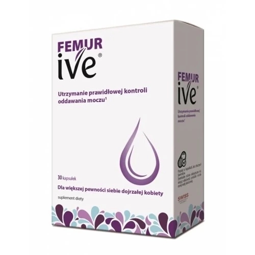 Suplement diety Femur-Ive został stworzony z myślą o kobietach w okresie okołomenopauzalnym. Preparat uzupełnia codzienną dietę w składniki, które wspomagają prawidłową kontrolę oddawania moczu. W składzie zawarto m.in. izoflawony z soi i lignany.