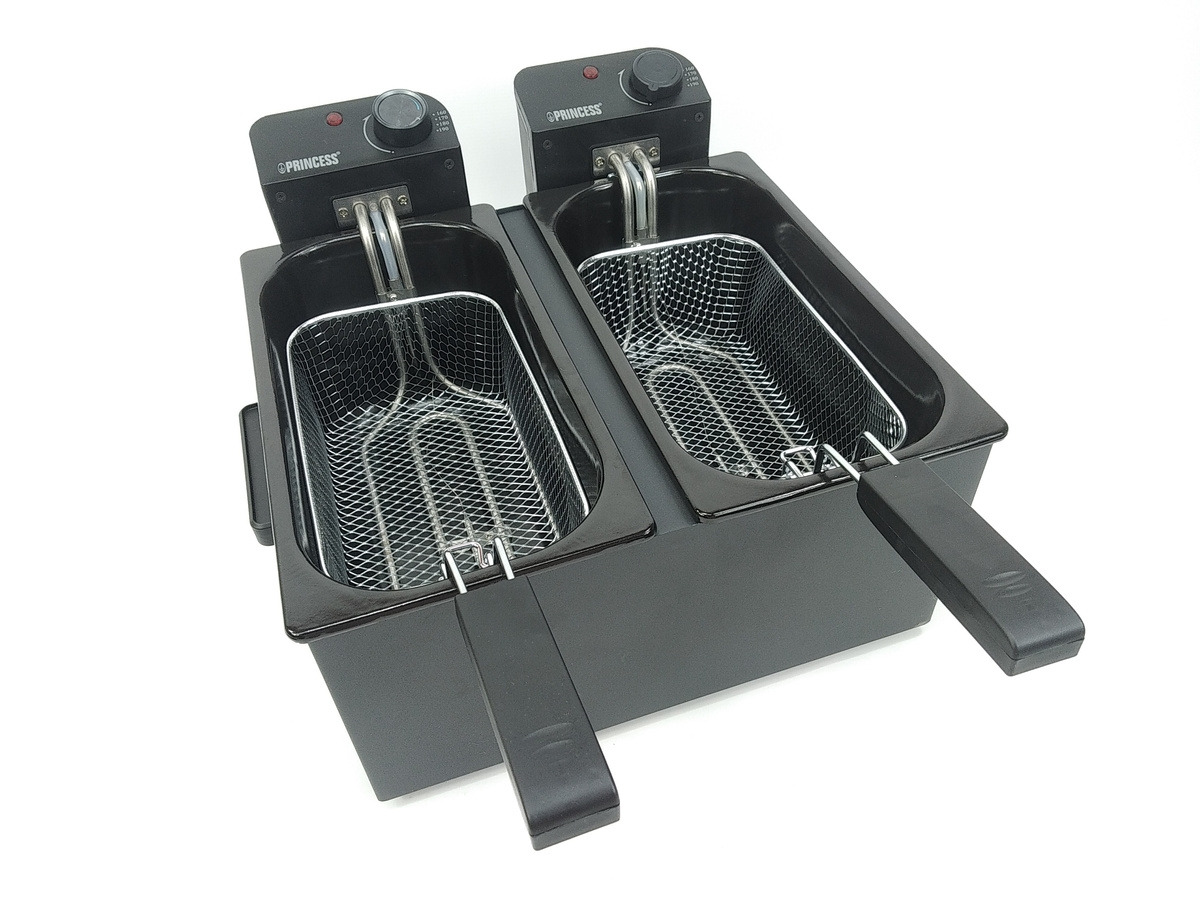 Frytkownica PRINCESS 183028 pozwala usmażyć naraz do 1,8 kg frytek w dwóch koszach. Ten podwójny model jest bardzo przydatny, ponieważ możliwe jest gotowanie w tym samym czasie dwóch różnych produktów.