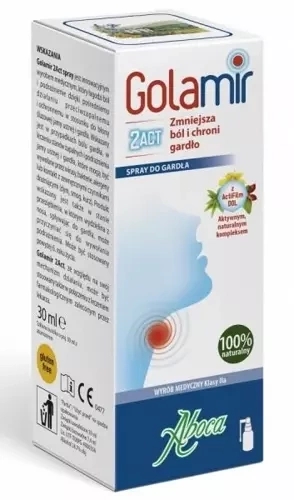 Wyrób medyczny Golamir 2Act Spray do gardła jest przeznaczony do stosowania u dorosłych i dzieci powyżej 1. roku życia. Preparat łagodzi ból i podrażnienie gardła. W składzie zawarto kompleks roślinnych tanin, żywic, polisacharydów i flawonoidów.