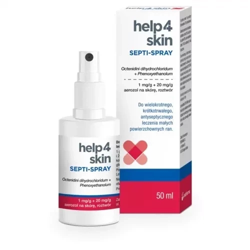 Help4Skin Septi-Spray to produkt leczniczy wskazany do stosowania m.in. w krótkotrwałym leczeniu antyseptycznym małych i powierzchownych ran u dzieci, młodzieży i dorosłych. Substancjami czynnymi leku są oktenidyny dichlorowodorek i fenoksyetanol.