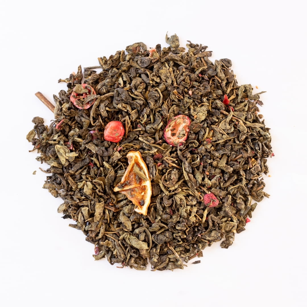 Herbata zielona ŻURAWINA I POMARAŃCZA Herbata zielona ŻURAWINA I POMARAŃCZA - skład Herbata zielona Gunpowder, plastry pomarańczy, żurawina liofilizowana, aromat. Herbata zielona ŻURAWINA I POMARAŃCZA - cechy produktu: Czas parzenia: 2-3 minuty Temperatura wody: 80 stopni Waga netto: 100 g Herbata wysokiej jakości Zapakowana w praktyczne i eleganckie czarne opakowanie Herbaty liściaste i zioła - jak pakujemy? Nasze herbaty liściaste, mieszanki owocowe i zioła pakujemy po 100g. Trafiają do Ciebie w szczelnie zamkniętym, czarnym opakowaniu, które jest przystosowane do kontaktu z żywnością. Ma zamknięcie strunowe, które pozwala na wielokrotne otwieranie i zamykanie opakowania. W naszych opakowaniach możesz przechowywać herbatę i zioła bez obaw, że wywietrzeją lub rozsypią się po otwarciu. Na każdym opakowaniu jest etykieta, z której dowiesz się: jaką herbatę lub mieszankę ziołową zawiera opakowanie jaki jest skład herbaty jaki jest termin przydatności do spożycia jaką wodą oraz jak długo trzeba parzyć daną herbatę Rodzaj herbaty (czarna, zielona, Pu erh, owocowa itd.) oznaczyliśmy kolorami, dzięki czemu łatwiej będzie znaleźć odpowiedni rodzaj, jeśli masz duże zapasy herbat i przechowujesz je w naszych opakowaniach.