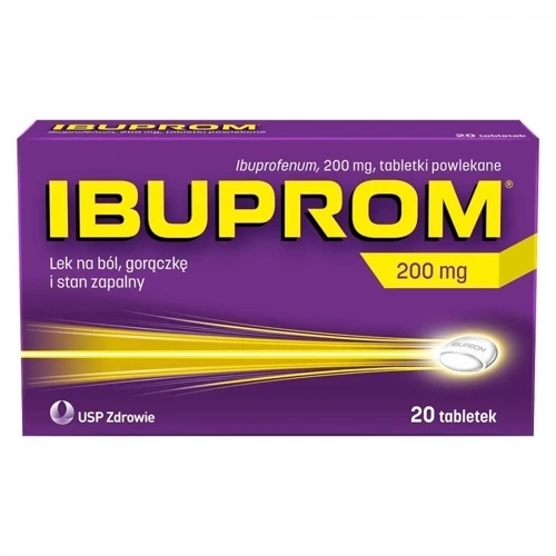 Produkt leczniczy Ibuprom 200mg zawiera jako substancję czynną ibuprofen. Wskazaniem do stosowania leku jest ból różnego pochodzenia o słabym i umiarkowanym nasileniu i gorączka. Lek można stosować u dzieci powyżej 6. roku życia i u osób dorosłych.