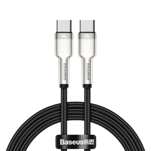 Baseus Cafule USB-C do USB-C Wysoka jakość wykonania Mocny kabel ładujący i synchronizujący dane marki Baseus z serii Cafule wykonany z wysokiej jakości stopu aluminium, wykończony oplotem nylonowym z końcówkami wzmocnionymi termoplastycznym elastomerem. Może służyć zarówno do ładowania z ładowarką sieciową lub samochodową oraz jako kabel przesyłowy z komputerem czy stacjami dokującymi. Długość kabla: 2m Kolor producenta: Black (czarny ze srebrnymi końcówkami) Obsługa technologii szybkiego ładowania Przewód ładuje z mocą aż do 100W, obsługuje szybkie ładowanie w standardach Qualcomm Quick Charge 3.0 oraz Power Delivery 2.0. Wydajny kabel jest w stanie naładować niemal każde urządzenie z portem USB-C; od słuchawek po telefony, tablety, konsole a nawet laptopy. Ładowanie i przesył danych Kabel Baseus Cafule może być używany zarówno do ładowania urządzeń jak i do synchronizacji danych o przepustowości do 480Mb/s. Obsługiwane maksymalne napięcie: 20V Obsługiwany maksymalny prąd ładowania: 5A Solidny oplot nylonowy Dzięki zastosowaniu nylonowego oplotu zwiększono wytrzymałość kabla, zmniejszając tym samym ryzyko jego uszkodzeń, a odciążniki naprężeń wzmocnione elastycznym TPE na obu końcówkach zapewniają ich większą elastyczność, co minimalizuje ryzyko pęknięcia i dłuższą żywotność. Do zestawu dołączony został pasek na rzep ułatwiający przechowywanie kabla.