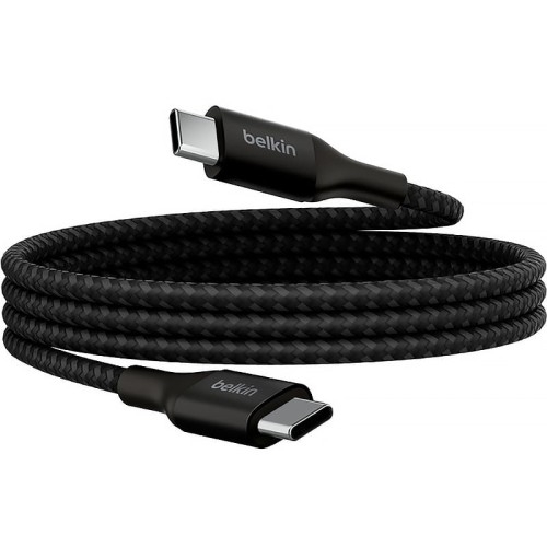 Belkin Boost↑Charge USB-C to USB-C Cable 240W USB-C do USB-C   Mocny i trwały kabel USB-C PD3.1 Oryginalny kabel ładujący i synchronizujący dane marki Belkin z serii Boost↑Charge wykonany z solidnych materiałów o mocnych końcówkach z anodyzowanego aluminium oraz przewodu wzmocnionego podwójnie plecionym oplotem nylonowym. Kabel przeznaczony dla urządzeń z portem USB-C. Można go używać zarówno do ładowania z ładowarką sieciową, samochodową jak i jako kabel połączeniowy z komputerem, czy stacjami dokującymi. Jego wyjątkowa przepustowość mocy na poziomie 240W pozwoli na przesył prądu do szerokiej gamy urządzeń, od np. niewielkich konsol mobilnych czy smartfonów, przez tablety aż do najnowszych laptopów z USB-C PD3.1. *Przedmiotem sprzedaży jest sam kabel, pozostałe akcesoria widoczne na zdjęciach służą jedynie przedstawieniu jego funkcjonalności. Długość kabla: 1m Kolor producenta: Black (czarny)     Podwójnie pleciony oplot nylonowy Kabel wzmocniono podwójnie plecionym oplotem nylonowym, aby zapewnić mu długotrwałą wytrzymałość w codziennym użytkowaniu przed przetarciami czy załamaniami. Dodatkowo zastosowanie oplotu charakteryzuje się mniejszą podatnością na skręcanie się konstrukcji przewodu a zarazem jego splątanie.       Przesyłanie danych oraz ładowanie Wykonany z wysokiej jakości materiałów kabel Belkin Boost↑Charge może być używany do ładowania urządzeń jak i do synchronizacji danych. Kabel jest dość giętki i łatwo się przechowuje, dzięki czemu możesz zawsze mieć go przy sobie. Wystarczy, że podłączysz go do źródła zasilania, by naładować swoje urządzenie czy to w domu, w biurze czy w podróży. Parametry: Power Delivery 3.1 do 240W max Wsteczna kompatybilność z różnymi poziomami mocy w tym 180W, 140W, 100W, 60W, itd. Transfer danych z prędkością do 480 Mb/s Standard USB 2.0 Temperatura pracy: od 0°C do 40°C przy wilgotności względnej (RH) od 10% do 90% Temperatura przechowywania: od -20°C do 70°C przy wilgotności względnej od 5% do 95% OTP - posiada zabezpieczenie przez przegrzaniem dzięki inteligentnym podwójnym chipom E-Marker Kompatybilny z serią iPhone 15       Wzmocnione końcówki Wzmocniona budowa końcówek kabla z anodyzowanego aluminium w połączeniu z podwójnym oplotem minimalizuje ryzyko pęknięcia lub uszkodzenia produktu, zwiększając jego ogólną trwałość. Producent zapewnia, że kabel Belkin jest o wiele wytrzymalszy od zwykłego kabla - po przeprowadzeniu wewnętrznych testów laboratoryjnych wytrzymał on aż 30'000 zgięć pod kątem 60° a także 10'000 podłączeń bez uszczerbku na swojej funkcjonalności.       Bezpieczeństwo użytkowania Certyfikat USB-IF zapewnia zgodność z technologią Hi-Speed USB. Oznacza to, że kabel został certyfikowany przez USB-IF w celu spełnienia wszelkich wymaganych standardów i norm elektrycznych, mechanicznych i środowiskowych.