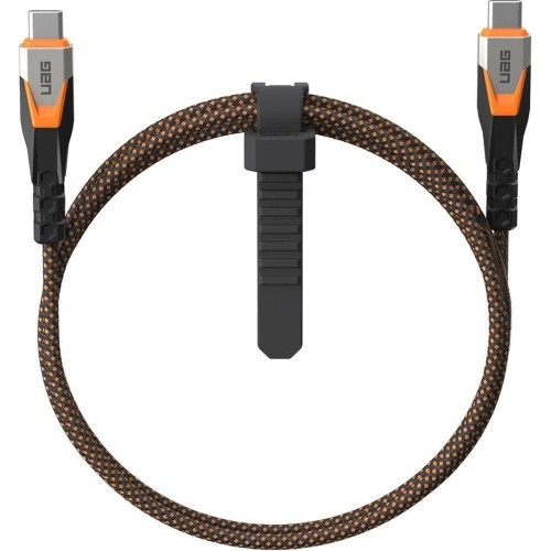 Urban Armor Gear SRGE USB-C - 3.2 USB-C 20Gbps, 240W USB-C do USB-C Niezwykle szybki kabel USB-C 240W Twoje urządzenie potrzebuje energii – szybko! Kabel o mocy 240W zapewnia błyskawiczne ładowanie, co pozwala Ci zaoszczędzić czas i nerwy. Pleciona, podwójnie wzmocniona powłoka nylonowa jest odporna na zużycie, uszkodzenia oraz wielokrotne zginanie, co sprawia, że kabel nie tylko wygląda stylowo, ale także służy przez lata. Dodatkowo, hybrydowa obudowa z metalu i wzmocnione złącza gwarantują jeszcze większą trwałość, nawet w intensywnym użytkowaniu. *Przedmiotem sprzedaży jest sam kabel, pozostałe akcesoria widoczne na zdjęciach służą jedynie przedstawieniu jego funkcjonalności. Długość kabla: 75 cm Kolor producenta: Black/Orange (czarny z pomarańczowymi elementami) Szybkie ładowanie, szybki transfer danych Jeśli poszukujesz kabla, który zapewni błyskawiczne ładowanie i szybki transfer danych, kabel SRGE to rozwiązanie dla Ciebie. Dzięki wsparciu technologii USB 3.2 Gen 2 (2x2), umożliwia transfer danych z prędkością nawet do 20 Gb/s, co oznacza, że przesyłanie dużych plików, filmów czy zdjęć zajmie dosłownie sekundy. Co więcej, obsługuje rozdzielczość 4K UHD przy 60 Hz, zapewniając płynny obraz, co czyni go idealnym do zadań multimedialnych na najwyższym poziomie. Kabel obsługuje technologię USB Power Delivery, zapewniając ładowanie mocą do 240 W. To oznacza znacznie krótszy czas ładowania urządzeń, co jest szczególnie przydatne w codziennym użytkowaniu, kiedy każda minuta się liczy. Szalenie odporny przewód na codzienne użytkowanie Codziennie korzystasz z telefonu? Ten kabel to przetrwa! Stworzony, aby wytrzymać ponad 50 000 zgięć, z wielokierunkowym odciążeniem Hex Matrix, podwójnie pleciona nylonowa powłoka zewnętrzna — ten twardziel zniesie nawet najcięższe użytkowanie. Bez względu na to, jak intensywnie go używasz, możesz liczyć na jego wytrzymałość i niezawodność każdego dnia. Łatwa organizacja kabli Kabel, który dba o porządek – zintegrowana opaska do organizacji pozwala utrzymać porządek w kablach, eliminując chaos i splątanie. Zapomnij o wiecznym szukaniu końcówki kabla, ciesz się porządkiem i wygodą na co dzień! Specyfikacja kabla USB-C Długość: 75 cm Budowa: podwójnie pleciona nylonowa powłoka zewnętrzna, wzmocniony rdzeń, odciążenie Hex Matrix Maksymalna moc ładowania: do 240 W Rodzaj złącza: 2x USB-C (męski) Funkcje kabla: ładowanie / przesył danych Prąd wyjściowy: 5A / 48V (Max) Rozdzielczość wideo: 4K przy 60 Hz Prędkość przesyłu danych: 20 Gb/s