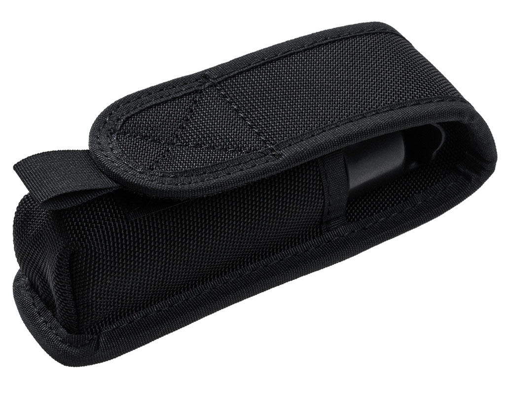 Kabura na gaz wykonana z trwałego nylonu, przystodowana wielkością do pojemników z gazem pieprzowym o pojemności do 75 ml (w zależności od kształtu pojemnika).