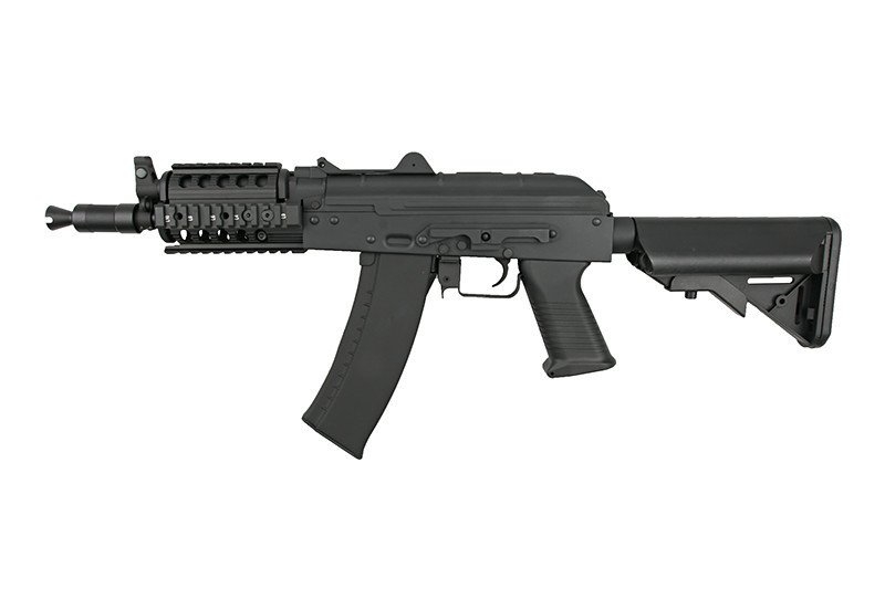 Replika posiada teleskopową kolbę typu SF o regulowanej długości. W miejsce standardowego łoża zastosowano tu kompletną konwersję z szynami montażowymi RIS 22mm, pozwalającymi na wyposażenie karabinka w dodatkowe akcesoria. Ponadto replika posiada ergonomiczny chwyt pistoletowy typu SAW. Z prawej strony znajduje się charakterystyczny dla replik systemu AK skrzydełkowy selektor trybu ognia/bezpiecznik. Z lewej strony korpusu umieszczono boczną szynę montażową typu "jaskółczy ogon" umożliwiającą instalację dedykowanych celowników optycznych, bądź dodatkowych szyn RIS.