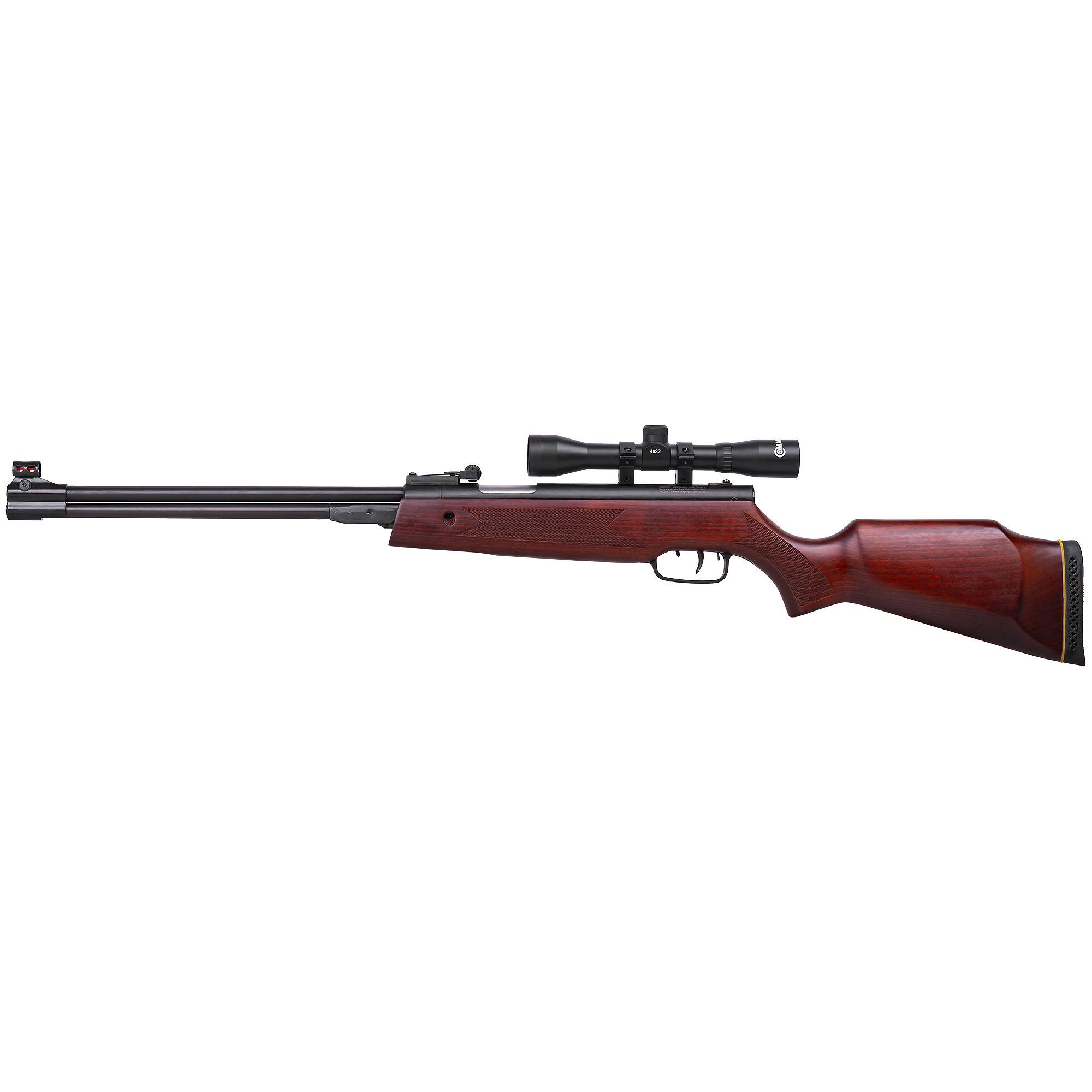 Dodatkowo karabinek posiada szynę do montażu optyki celowniczej (11 mm) oraz w zestawie lunetę o parametrach 4x32.