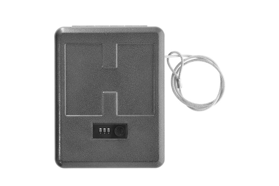Umarex Safety Box L zamykana jest za pomocą zamka szyfrowego z 3-cyfrowym kodem dostępu.