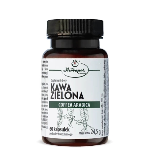 Suplement diety Kawa zielona uzupełnia codzienną dietę w zielone ziarna kawy. Jest to produkt w postaci kapsułek pochodzenia roślinnego przeznaczony do stosowania jako uzupełnienie diety osób dorosłych, które chcą zadbać o prawidłową masę ciała.