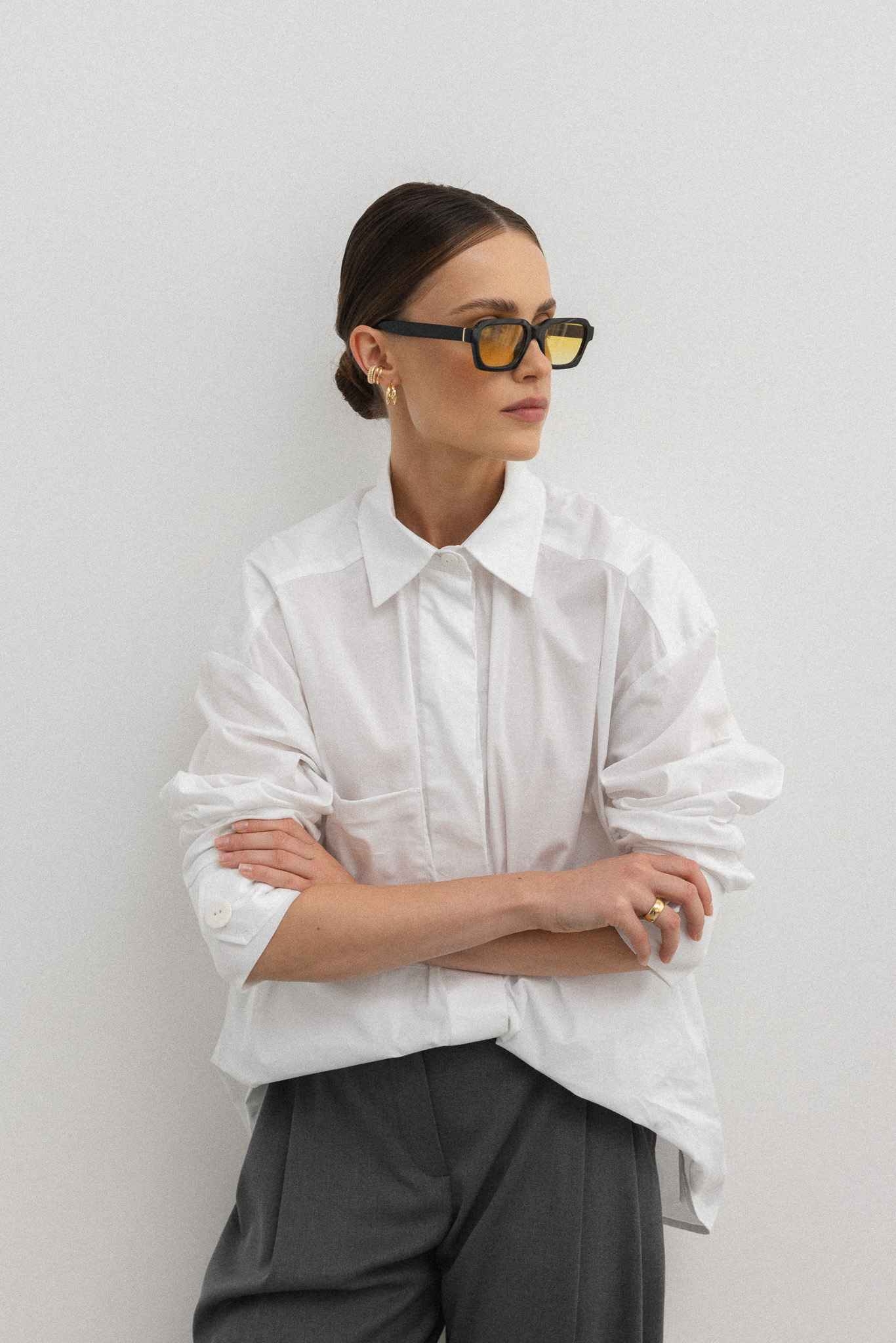 Nasza koszula SANTA FE to połączenie prostego kroju z eleganckim wzornictwem. Wykonana z lekkiej bawełny w kolorze białym , stanowi doskonały wybór na wiele okazji. Klasyczny kołnierz nadaje jej formalny wygląd, podczas gdy ozdobne mankiety z guzikiem dodają wyjątkowego charakteru. Z przodu koszuli znajduje się praktyczna kieszeń, która nie tylko jest funkcjonalna, ale także ozdabia cały design. Koszula zapięta jest na guziki ukryte pod listwą, co nadaje jej elegancką i schludną estetykę. To idealna opcja na spotkania biznesowe, randki czy inne okazje, gdy chcesz prezentować się stylowo i z klasą. Jest to nie zaprzeczalny klasyk który powinien znaleźć się w szafie każdej kobiety . Modelka ma 174cm wzrostu i prezentuje rozmiar S/M. SKŁAD: 100% Bawełna ZALECANA PIELĘGNACJA :