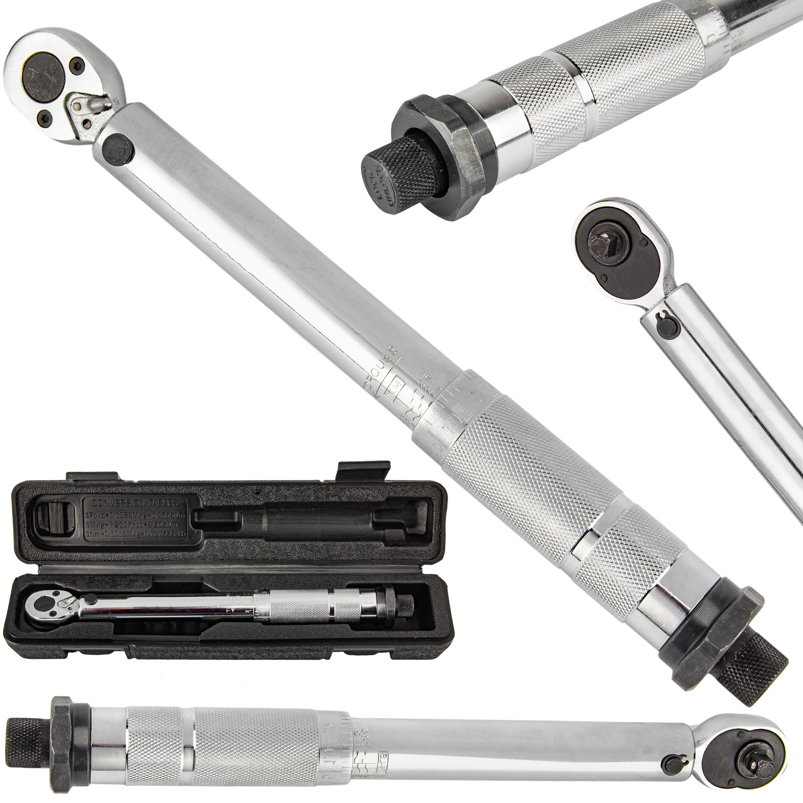- Klucz posiada kwadratową końcówkę do mocowania nasadek o wielkości 3/8".