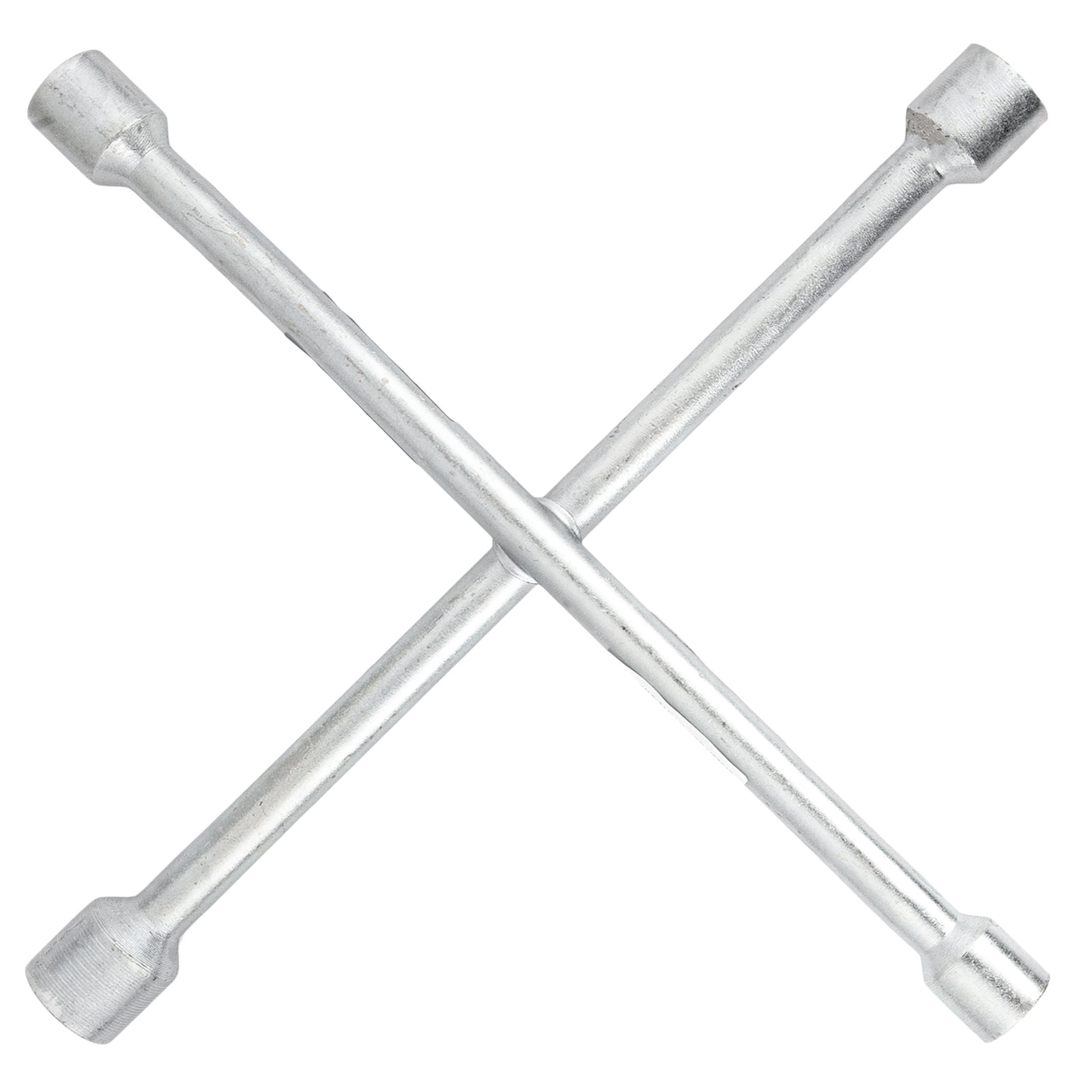 Prezentowany klucz posiada na swoich końcach typowe nasadki do śrub występujących w kołach samochodów dostawczych i osobowych.