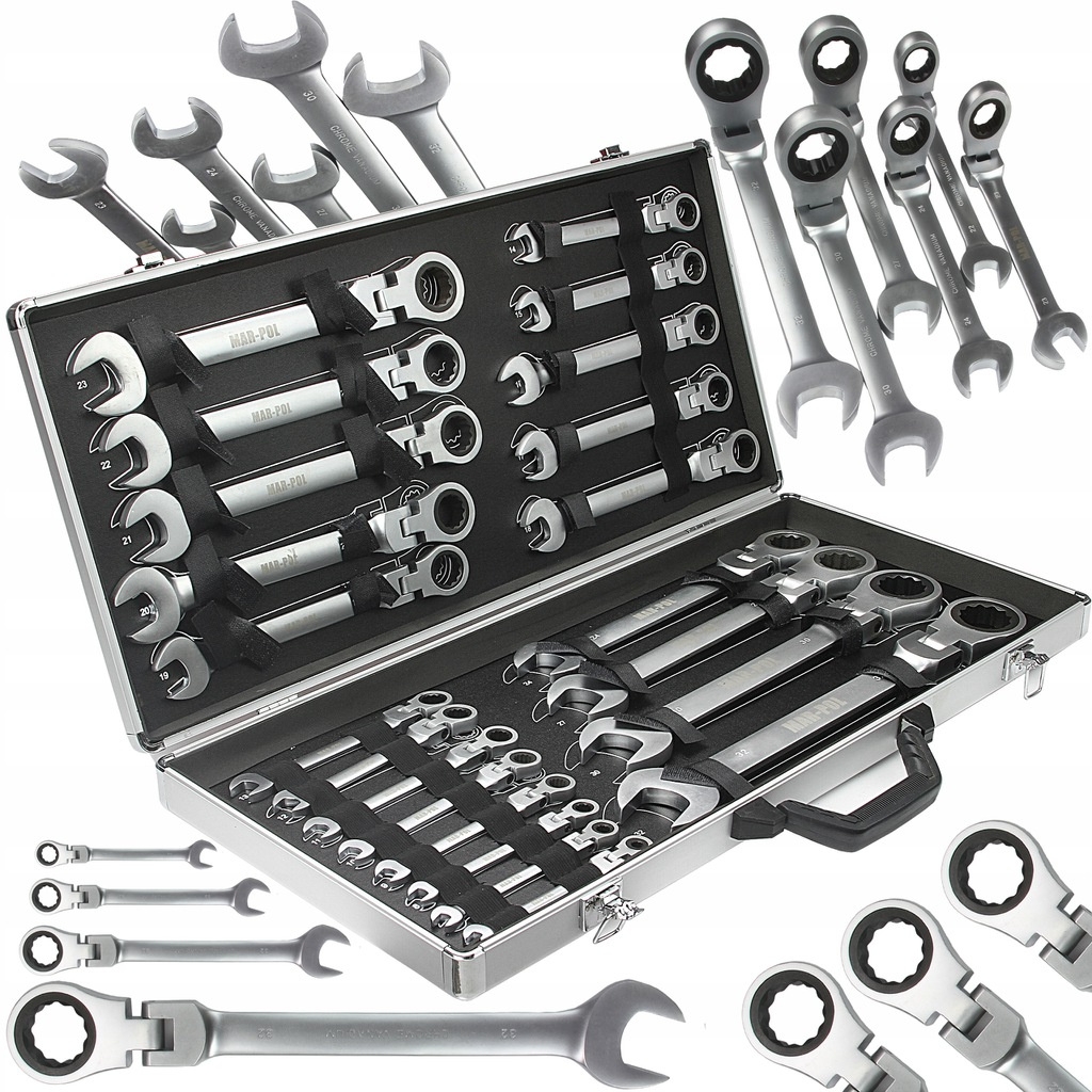Klucze Płasko Oczkowe z Grzechotką Łamane 22el 6-32 Zestaw MAR-POL Opinie
