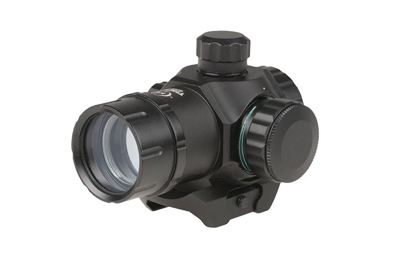 Celownik kolimatorowy Theta Optics Open zasilany baterią CR1620, umożliwia użycie zielonej lub czerwonej plamki celowniczej do prowadzenia działań zarówno dziennych, jak i nocnych.