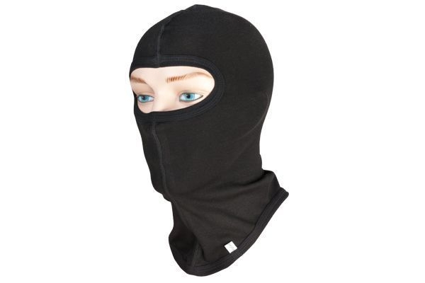Czarna, lekka kominiarka z podłużnym wycięciem na oczy wykonana z bawełny i lycry. Zastosowanie takich materiałów zapewnia trwałość, elastyczność i oddychalność.