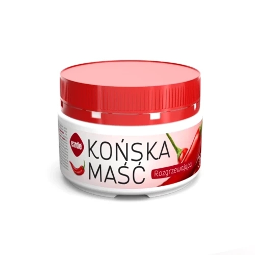 Końska Maść to preparat o działaniu rozgrzewającym i kojącym. Polecany jest do stosowania w przypadku przemęczenia oraz nadmiernego wysiłku, zapewnia ulgę i redukuje napięcie mięśni, stawów i ścięgien. Maść zawiera m.in. kamforę i olejki eteryczne.