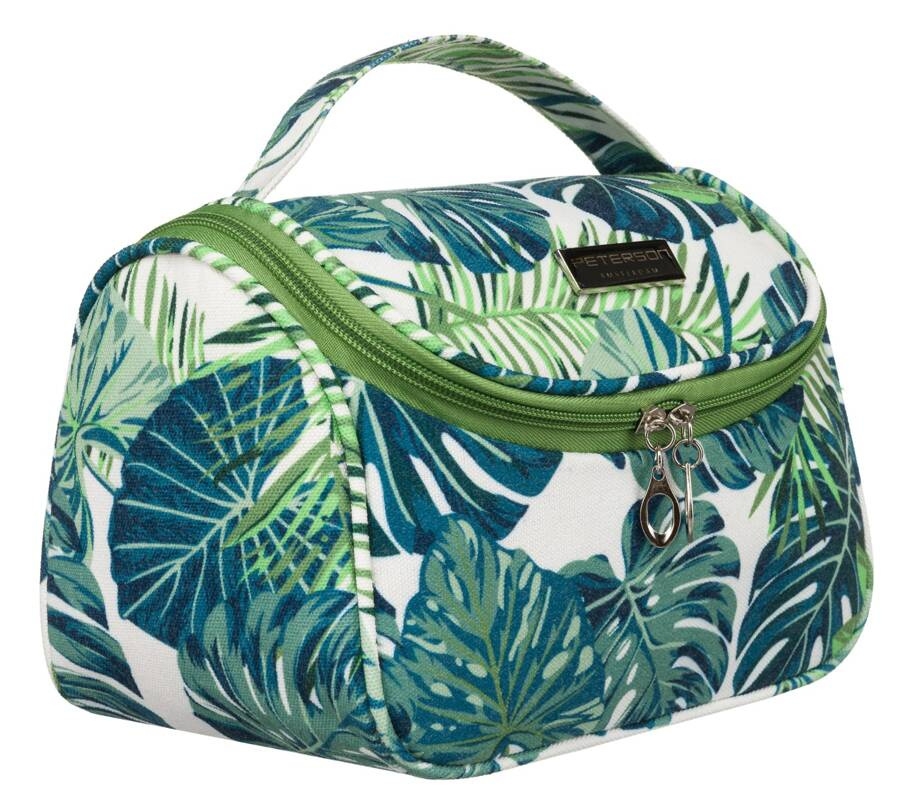 Stylowa kosmetyczka Peterson z motywem jungle to idealny wybór na podróże. Wyposażona w wygodny uchwyt, pomieści wszystkie niezbędne kosmetyki. Tropikalny wzór dodaje jej oryginalnego charakteru, łącząc styl z funkcjonalnością.