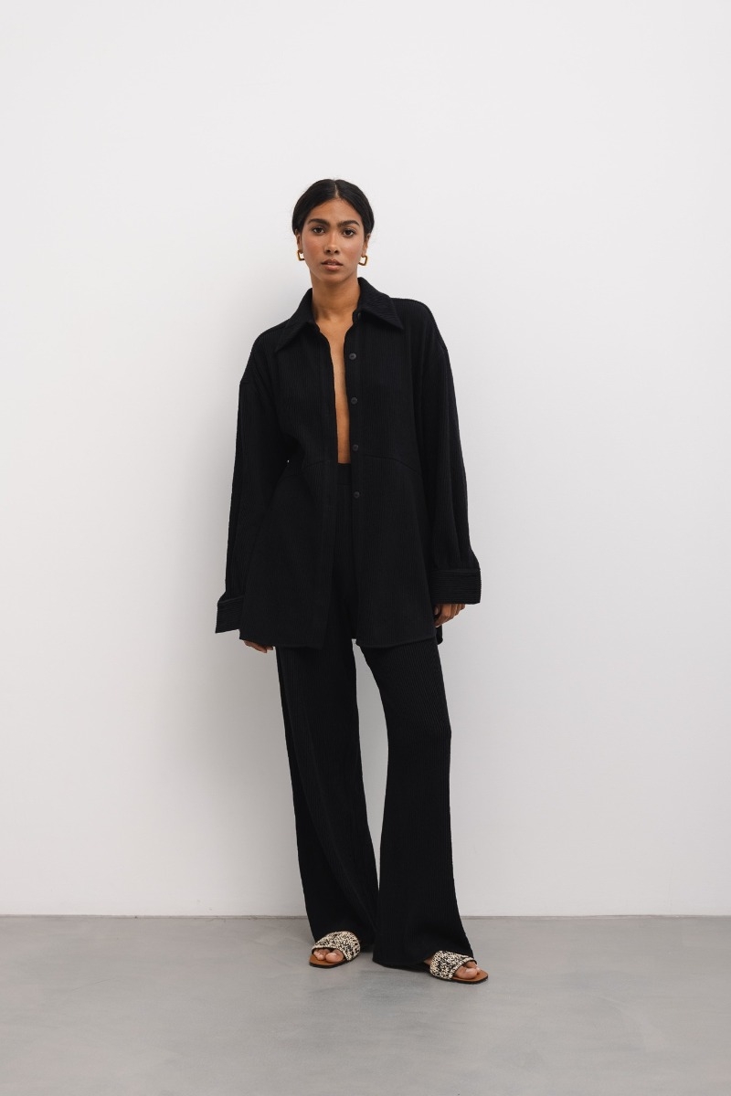 Opinie o Koszula typu oversize z plisowanej BAWEŁNY w kolorze czarnym - BORGO-S/M Marsala