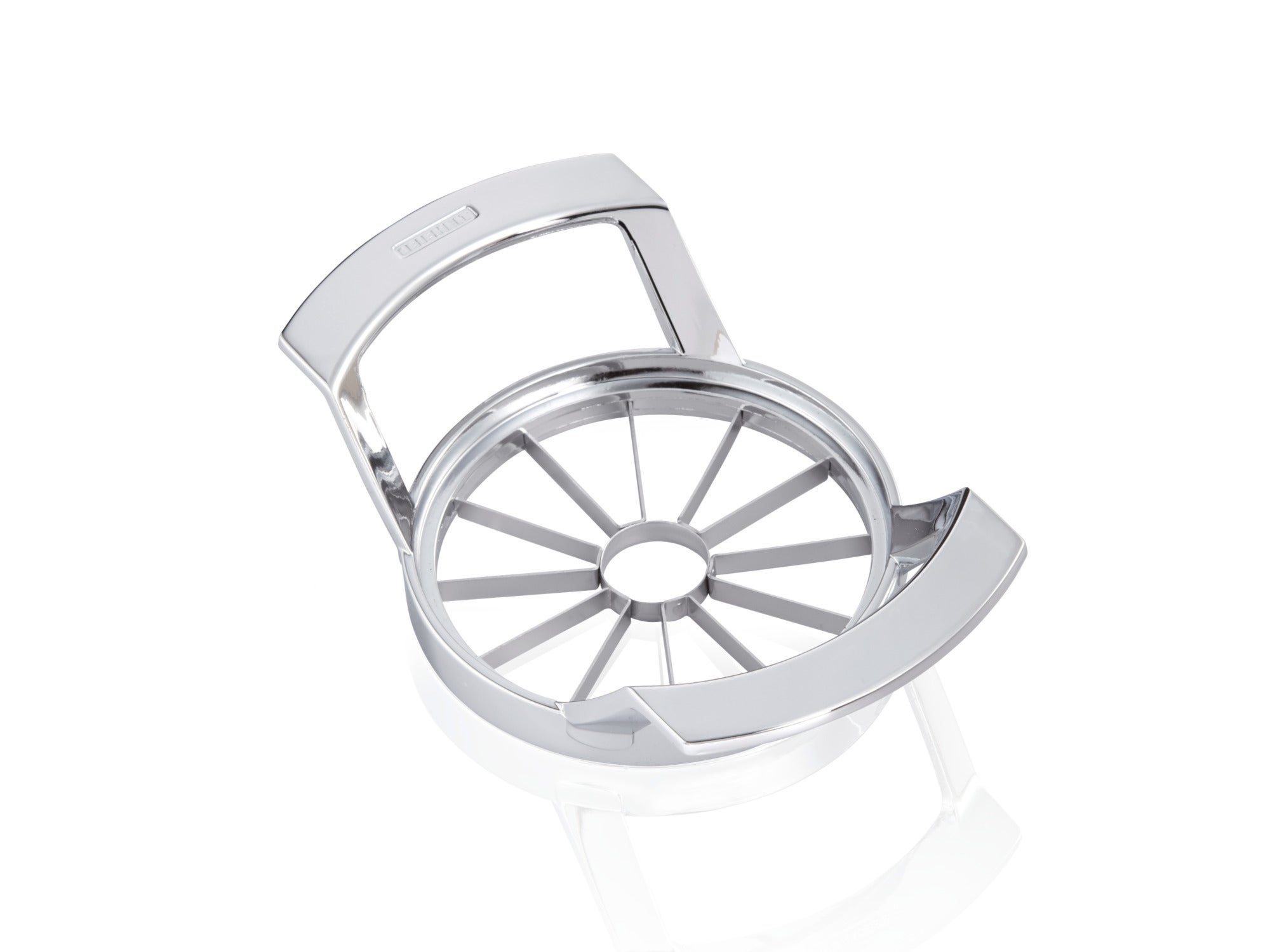 Krajalnica do jabłek marki Leifheit umożliwia błyskawiczne pokrojenie zdrowych i pysznych owoców, usuwając przy tym ich gniazdo z pestkami. Wykonano ją z wysokiej jakości chromowanej stali nierdzewnej. Wytrzymałe ostrza kroją owoce na dwanaście równych kawałków, które można wykorzystać m.in. do dekorowania ciast i deserów, uzupełniania potraw lub komponowania sałatek. Krajalnica sprawdzi się w przypadku porcjowania jabłek czy gruszek. Specjalny otwór umożliwi jednoczesne usunięcie z jabłka gniazda nasiennego.