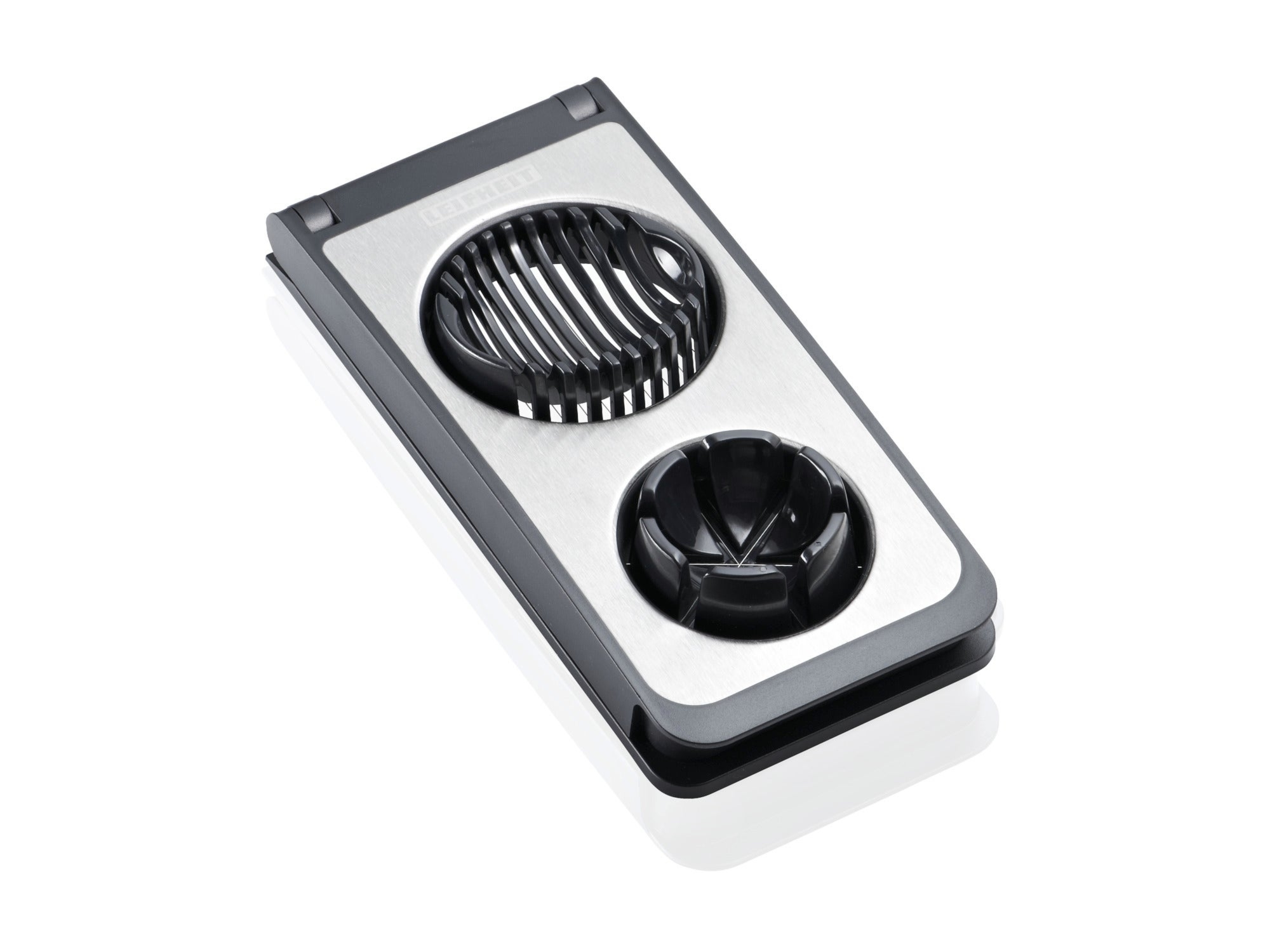 Krajalnica do jajek Combi marki Leifheit jest bezpieczna i bardzo łatwa w użyciu. By rozpocząć krojenie, należy unieść ramię modelu Combi, włożyć w jedno z dwóch wyprofilowanych miejsc produkt i nacisnąć ramię. Druciki błyskawicznie i bezproblemowo potną zawartość krajalnicy w równe fragmenty już podczas pierwszego użycia. Pocięte produkty łatwo wyjmuje się z wnętrza modelu Combi. Krajalnicę można myć w zmywarce.