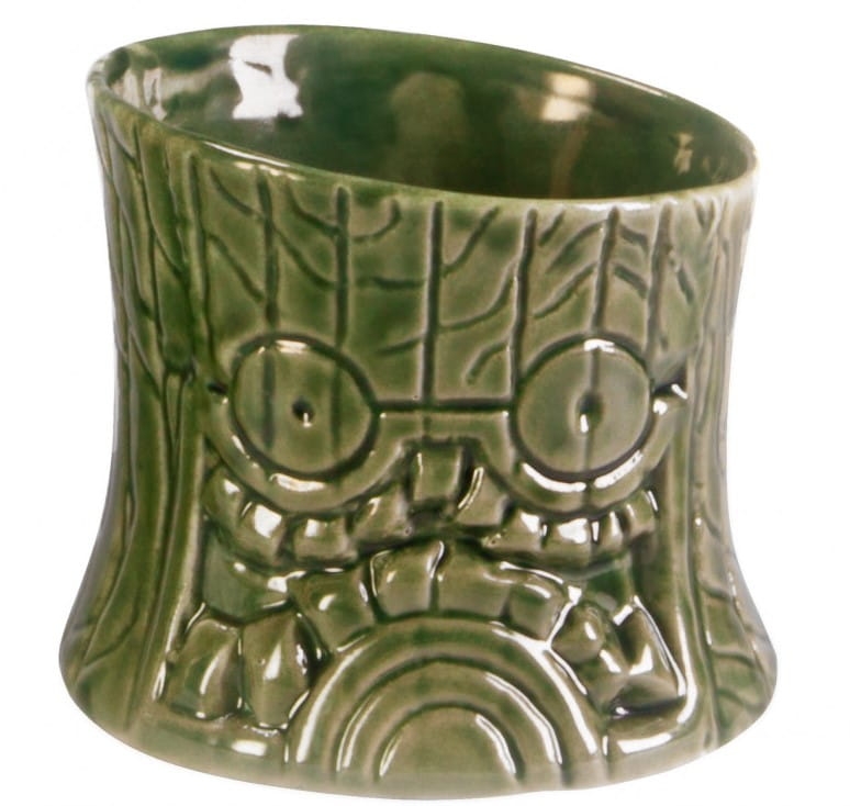 Kubek Tiki Szalone drzewo ceramiczny 340 ml Kubek Tiki Szalone drzewo ceramiczny 340 ml to prawdziwa gratka dla miłośników kubków Tiki. Szeroki i niski kubek o pojemności 340 ml został wytworzony i pomalowany ręcznie, co nadaje mu wyjątkowej wartości. Kształtem przypomina pniak drzewa, a na froncie posiada namalowaną twarz polinezyjskiego szamana. To niebanalne naczynie ma wiele zastosowań. Można spożywać w nim napoje, zimną kawę, sok, wodę, a nawet potraktować jako dekorację i podczas przyjęcia trzymać w nim np. słomki do napojów czy przekąski. Ręcznie wytworzony ceramiczny kubek Tiki nie nadaje się do mycia w zmywarce, należy myć wyłącznie ręcznie. Jeśli zainteresowała cię historia kubków Tiki, więcej dowiesz się TUTAJ. Spodobały Ci się kubki Tiki i chcesz rozbudować kolekcję? Polecamy także inne Tiki Mugs w naszej ofercie. Kubek Tiki - cechy produktu: Kubek tiki wykonany z ceramiki, przeznaczony do napojów zimnych, Ręcznie wytworzony i pomalowany, Pojemność: 340 ml, Kolor: zielony. Kubek w kształcie pnia drzewa z twarzą polinezyjskiego szamana, Możliwość serwowania drinków, soków, frappe, ponczu i wiele innych napojów, Kubek należy myć ręcznie, nie nadaje się do mycia w zmywarce. Wymiary: Wysokość: 8,3 cm Średnica: 9 cm Pojemność: 340 ml
