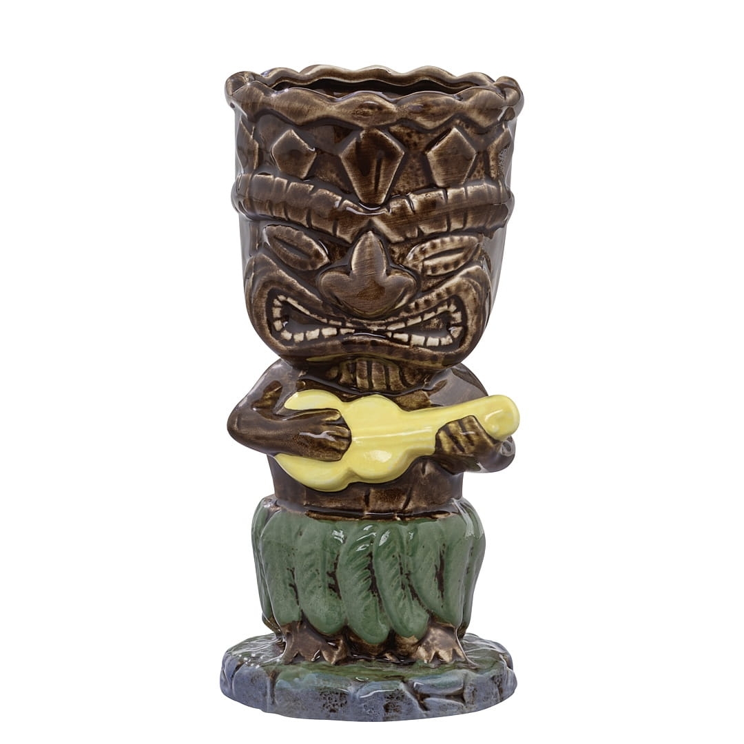 Kubek Tiki Ukulele 400 ml ceramiczny Kubek Tiki Ukulele 400 ml to zabawny kubek ceramiczny do drinków i napojów przedstawiający wesołego mieszkańca rajskich wysp, który przygrywa podczas imprezy skoczną melodię na ukulele. Drinki podawane w takim kubku chyba wprawią wszystkich w taneczny nastrój 😉 Kubek Tiki Ukulele to świetny Tiki mug na różne okazje, np. imprezę w stylu hawajskim, halloweenową czy na grilla. Taki kubek Tiki zawsze wpada w oko zaproszonym gościom! Jest jednak nie tylko efektowny, ale także niezwykle praktyczny. Można w nim podawać: egzotyczne drinki, z dużą ilością lodu wersje XXL klasycznych drinków lemoniady i napoje gazowane wodę Kubek Tiki jest znakomity gdy duża pojemność jest ważna, bo wolimy podać jedną dużą porcję drinka, niż co chwila robić nowego w mniejszym szkle.   Kubek Tiki na prezent Kubek Tiki to bardzo dobry pomysł na prezent. Podarowując go możemy zapoczątkować nowe hobby - tiki mugs idealnie nadają się do kolekcjonowania! Kubek Tiki jest to produkt z oferty niemieckiego producenta akcesoriów barmańskich wysokiej jakości. Kubki są malowane ręcznie, a później wypalane, dlatego każdy kubek jest unikatowy i wygląda inaczej. To czyni go jeszcze lepszym prezentem!   Kubek Tiki Ukulele 400 ml ceramiczny - cechy produktu kubek ceramiczny do drinków przeznaczony do napojów zimnych świetny produkt na prezent, idealny do kolekcjonowania należy myć ręcznie produkt z oferty niemieckiego producenta akcesoriów barmańskich wysokiej klasy pojemność: 400 ml