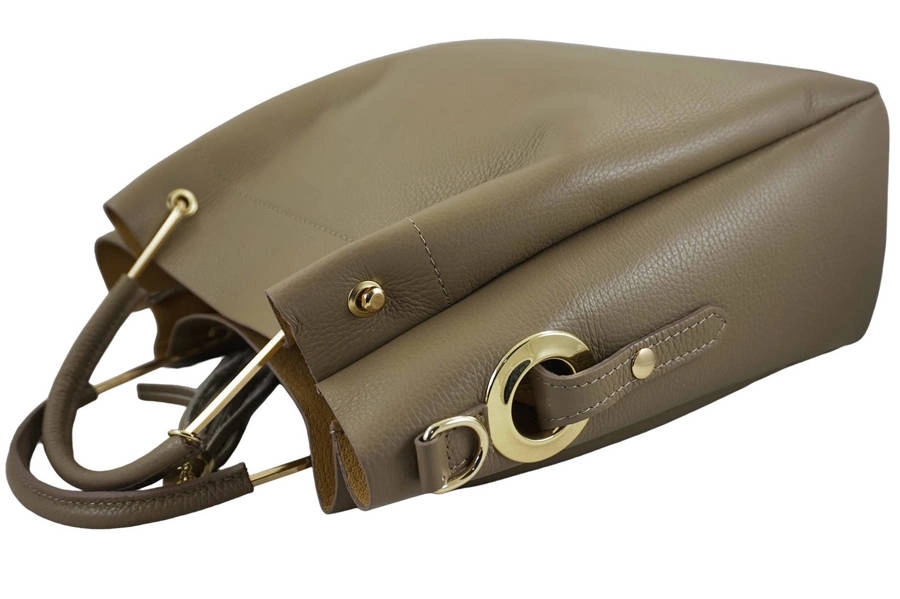 Wnętrze kuferka: eleganckie torebki kuferki skórzane ze złotymi okuciami są zasuwane, posiadają dwa uchwyty do ręki (metalowy uchwyt częściowo obleczony skórą; długość 35cm, wysokość 10cm), dopinany pasek na ramię (długość 102cm, wysokość 54cm, szerokość paska 1,5cm) oraz ozdobny skórzany frędzelek na krótkim złotym łańcuszku, mocowany do jednego z uchwytów. Wewnątrz znajduje się pojemny zasuwany wkład (wymiary wkładu: wys. 22cm, szer. 30cm, dno 10cm), mocowany za pomocą zatrzasków na paskach przechodzących przez ozdobne metalowe kółeczka. Na usztywnionym spodzie znajdują się metalowe stopki chroniące przed otarciem. W naszym sklepie znajdziesz wiele propozycji torebek klasycznych, kuferków, wygodnych listonoszek oraz portfeli ze skóry naturalnej licowej lub lakierowanej. Szukasz pojemnej i zarazem eleganckiej niewielkiej torebki? Proponowane torebki kuferki skórzane idealnie komponują się ze stylizacjami na każdy dzień.