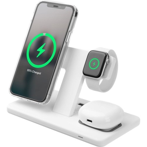 Fixed Powerstation Wireless Charging Stand 3in1 Urządzenia obsługujące ładowanie bezprzewodowe / Apple iPhone (seria 12 i nowsze) / Apple Watch / AirPods Potrzebny medyk! Zegarek odszedł do świata rozładowanych, słuchawki pikają ostrzegawczo, a na telefonie widnieje powiadomienie o niskim stanie baterii? I weź tu teraz szukaj ładowarek. A wystarczy ta jedna jedyna - ładowarka bezprzewodowa Powerstation czeskiej marki Fixed. Z tą praktyczną podstawką już nie będziesz musiał rozwiązywać zagadek zaginionych odzyskiwaczy utraconych procentów - stojak został wyposażony w dwa panele o mocy ładowania 15 W oraz port USB-A o mocy 5W i uchwyt na ładowarkę Apple Watch*. Lewy panel pozwoli Ci ładować telefon w pozycji stojącej, dzięki czemu nie umknie Ci żadne powiadomienie, z kolei prawy może posłużyć do ładowania słuchawek lub kolejnego telefonu. Gadżet jest kompatybilny z funkcją MagSafe. Wymiary: 17,5 x 9,8 x 11,1 cm Waga: 205g Kolor producenta: White (biały) * Ładowarka Apple Watch nie znajduje się w zestawie. Francja elegancja Niech nie zwiedzie Cię jej prosty wygląd - każdy z elementów został skrupulatnie przemyślany. Całość została wykonana z połączenia wytrzymałych tworzyw sztucznych, które są pokryte miękką silikonową warstwą zapobiegającą porysowaniu elektroniki. Znajdujące się z przodu diody informują o stanie naładowania urządzenia, a antypoślizgowe nakładki sprawią, że ładowarka nigdzie się sama nie ruszy. W tylnej części podstawki producent umieścił rowek na kabel. Ładowarka składa się z 3 części, które możesz złożyć razem lub stosować osobno. Bez kabli - bez problemu Proces ładowania rozpoczyna się natychmiastowo po umieszczeniu urządzenia na ładowarce. Bez żadnych zaklęć i ukrytych przycisków. Stojak na telefon obsługuje moc do 15 W, tak samo jak znajdująca się obok płytka na słuchawki lub inny telefon*. Panele nie wybrzydzają i nadają się do ładowania urządzeń w etui lub pokrowcu. Aby ładowarka mogła dać z siebie wszystko, zaleca się podłączenie jej do zasilania za pomocą ładowarki o mocy minimum 37 W w standardzie PD**. Post USB-A służy do podłączenia ładowarki Apple Watch, dla której naszykowano specjalne miejsce na balkonie, w górnej części podstawki. Wejście: 12V / 3A, 9V / 3A, 5V / 3A Wyjście: 5W / 7,5W / 10W / 15W Wyjście USB-A: 5V1A (maks. 5W) * Prosimy pamiętać, że nie każde urządzenie na Ziemi obsługuje ładowanie bezprzewodowe. ** Kabel USB-C znajduje się w zestawie, adapter należy dokupić osobno. Co w środku? W zestawie Fixed Powerstation Wireless Charging Stand 3in1 znajduje się: stojak oraz kabel USB-C.