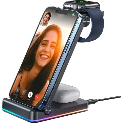 Opinie o Ładowarka indukcyjna 3w1 Joyroom JR-WQN01, 15W, do iPhone/Apple Watch/AirPods, czarna