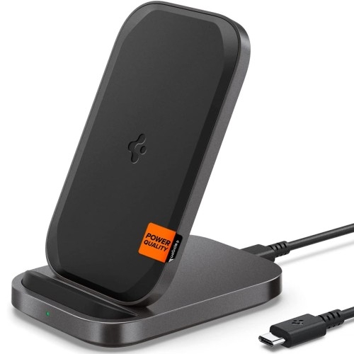 Spigen PowerArc ArcField Wireless Charger Qi 15W - PF2102"Designed for Samsung" Zoptymalizowana dla smartfonów i akcesoriów Samsung obsługujących ładowanie indukcyjne Ładowarka indukcyjna z certyfikacją "Designed for Samsung" Nowoczesna ładowarka bezprzewodowa PowerArc ArcField z kablem USB-C/USB-C o długości 1,8 m marki Spigen z certyfikacją Designed for Samsung, zoptymalizowana dla urządzeń Samsung obsługujących standard ładowania bezprzewodowego. Gustowna konstrukcja o niewielkim rozmiarze sprawia, że świetnie wygląda na biurku czy stoliku. To elegancki projekt o smukłych rozmiarach, zachowujący minimalistyczny i stylowy wygląd o antypoślizgowym wykończeniu. Jej maksymalna moc ładowania wynosi 15W. Ładowanie telefonu może się odbywać zarówno w orientacji pionowej jak i poziomej. Ładowarka z obsługą Samsung Super Fast Wireless Charging - należy mieć na uwadze, że na niektórych kompatybilnych urządzeniach może się ono wyświetlać jeszcze jako "Fast Wireless Charging", co powinno ulec zmianie po aktualizacjach systemu operacyjnego Samsung OS. Do zasilenia wymaga ładowarki sieciowej 25W z USB-C PD 3.0 o parametrach 9.0V/2.77A (lub lepszej) *Przedmiotem sprzedaży jest sama ładowarka bezprzewodowa z kablem - pozostałe akcesoria widoczne na zdjęciach służą jedynie przedstawieniu jej funkcjonalności. PowerArc to kolejna marka-córka sukcesywnie rozwijającej się firmy Spigen, nastawiona na projektowanie wysokiej jakości urządzeń i komponentów jak np. kable, powerbanki, czy różnego rodzaju ładowarki, służących do ładowania sprzętów mobilnych. Wszystkie te akcesoria produkowane są z niezwykłą starannością, z zastosowaniem najnowszych technologii i nowoczesnego design'u. Kolor producenta: Black (czarno-szara) Szybkie ładowanie Qi do 15W dla Samsung Ładowarka jest dobrze zoptymalizowana dla urządzeń Samsung, dzięki wbudowanemu oryginalnemu modułowi ładowania od Samsung. Posiada szeroki zakres mocy wyjściowych, które rozpoznaje automatycznie dzięki technologii AirBoost. Pozwala to na optymalne dostosowanie mocy ładowania do wielu urządzeń. Wyjście Qi obsługuje następujące 4 tryby pracy Qi: 5W / 7.5W / 10W / 15W Dzięki niej optymalnie naładujesz szeroki zakres urządzeń od Samsunga zgodnych z technologią ładowania bezprzewodowego. Współpracuje także z niemetalicznymi pokrowcami o grubości do 5mm. Dodatkowo przy funkcjonalnych futerałach przed ładowaniem należy zdjąć wszelkie metalowe obiekty, karty płatnicze czy blaszki uchwytów magnetycznych. Ładowanie w pionie jak i poziomie Budowa ArcField i jej wewnętrzny układ komponentów sprzyjają ładowaniu telefonu w dowolnej orientacji, czy to pionowej czy poziomej. Niezależnie od tego, jaki potrzebujesz widok na ekran swojego smartfona podczas podtrzymywania jego energii, nie będziesz zawiedziony zbędnymi ograniczeniami. Nowoczesne technologie Ładowarka od marki Spigen została wyposażona w szereg najnowszych technologii, by zapewnić bezpieczeństwo ładowania przy optymalnym przesyle mocy. Technologia OverHeat zapewnia kontrolę temperatury zabezpieczając przed rozgrzewaniem się do niebezpiecznych dla telefonu zakresów temperatur, ponadto inteligentny chip odpowiednio dostosowuje moc ładowania dla wykrytego urządzenia, jak i zapobiega przeładowaniom czy przepięciom podczas procesu ładowania. Stylowe wykończenie Budowa ładowarki jest minimalistyczna i elegancka, a całość świetnie wygląda na biurku czy stoliku. Gładki lecz antypoślizgowy pad ładowania osadzony jest w stylowej podstawie z niewielką diodą LED, informującą o statusie ładowania. Waga: ok. 139 g Wymiary ładowarki: 10 x 11,5 x 7 cm Długość kabla: 1,8 m
