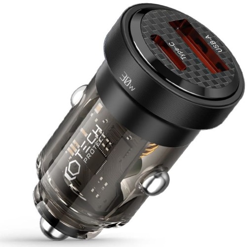Ładowarka samochodowa Tech-Protect CC30W port USB-C / USB-A Mała, ale jara Dwuportowa ładowarka CC30W od Tech-Protect doskonale sprawdzi się w zapewnieniu szybkiego i bezpiecznego ładowania dwóch urządzeń jednocześnie. Ta kompaktowa i poręczna ładowarka została zaprojektowana z myślą o wygodzie i trwałości. Wtyczka ładowarki została wykonana z lekkiego, ale wytrzymałego aluminium oraz poliwęglanu, co gwarantuje trwałość i odporność na przypadkowe upadki czy wstrząsy. Jej niewielkie rozmiary sprawiają, że bez trudu można ją przechowywać w samochodzie, nie zajmując zbyt wiele miejsca. Kolor producenta: Black (czarna) Udane ładowanie Wyposażona w dwa różne porty, umożliwiające ładowanie zarówno za pomocą standardowego USB-A, obsługującego szybkie ładowanie QuickCharge 3.0, jak i portu USB-C z technologią PowerDelivery. Dzięki temu można korzystać z różnych kabli i ładować urządzenia o różnych wymaganiach ładowania. Specyfikacja: USB1-A: 4.5V/5A, 5V/4.5A, 5V/3A, 9V/2A, 12V/1.5A USB2-C (PD): 5V/3A, 9V/3A, 12V/2.5A Napięcie wejściowe: 12V-24V Moc wyjściowa USB1 + USB2: 30W Mała czarna Tech-Protect CC30W ma zaawansowany system kontroli energii, który zapewnia bezpieczne rozprowadzanie prądu i równomierne podział napięcia na każdy z portów. Dzięki temu ryzyko uszkodzenia ładowanych urządzeń jest minimalne, a proces ładowania odbywa się sprawnie i efektywnie.