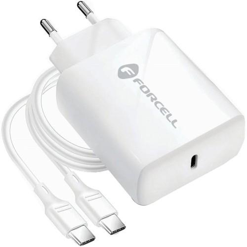 Ładowarka sieciowa Forcell F-Energy 25W Uniwersalna / 1x USB-C / kabel USB-C w zestawie   Energia w każdym momencie! Pozbądź się frustracji z długim ładowaniem! Wypróbuj ładowarkę sieciową Forcell 25W, która wykorzystuje technologię Quick Charge 4.0 oraz Power Delivery. Dzięki wsparciu dla funkcji AFC (Adaptive Fast Charging) została szczególnie zaprojektowana dla urządzeń SAMSUNG, co oznacza szybkie ładowanie adaptacyjne. F-Energy nie tylko błyskawicznie naładuje Twój smartfon, ale również inteligentnie monitoruje proces ładowania, przerywając go w odpowiednim momencie, aby przedłużyć żywotność baterii. Kolor producenta: White (biały) Przedmiotem sprzedaży jest sama ładowarka sieciowa wraz z kablem USB-C, pozostałe akcesoria widoczne na zdjęciach służą jedynie przedstawieniu jego funkcjonalności.      Swoboda użytkowania! Dodatkowo w zestawie znajdziesz kabel USB-C o długości 1,2m, który umożliwia bezproblemowy transfer danych między komputerem a telefonem. Dłuższy przewód zapewnia wygodę i swobodę korzystania z urządzenia nawet podczas ładowania. Niezależnie od tego, czy jesteś w pracy, czy w domu, ciesz się komfortem i mocą na wyciągnięcie ręki!     Zabezpieczenia, które działają! Nie ryzykuj bezpieczeństwa swojego sprzętu! Jeśli obawiasz się zwarć, przepięć lub nadmiernego prądu, ładowarka jest właśnie dla Ciebie. Dzięki zaawansowanemu systemowi zabezpieczeń możesz ładować swoje urządzenia bez najmniejszych obaw o ich ochronę. Inwestując w Forcell, inwestujesz w trwałość i bezpieczeństwo swojego sprzętu!   Odporna, trwała, mobilna! Zawsze znajdzie dla siebie miejsce – czy to w torbie, plecaku, czy kieszeni! Dzięki kompaktowej budowie i wytrzymałym, bezpiecznym materiałom jest gotowa na każde wyzwanie. Jest odporna na wstrząsy, dzięki temu doskonale sprawdzi się nawet w intensywnych warunkach użytkowania.   Czas na specyfikację Napięcie wejściowe: 110-240V~ Wejściowa częstotliwość prądu przemiennego: 50-60Hz, 0.5A Napięcie wyjściowe: 5V 3A / 9V 2.2A Moc wyjściowa: 25W Średnia sprawność podczas pracy: >85,46% Sprawność przy niskim obciążeniu (10%): >75,46% Zużycie energii w stanie bez obciążenia: < 0.1W Gniazdo: USB-C Kabel: USB-C/USB-C Uwaga!Zaleca się używać odpowiedniego przewodu, tj. takiego, który posiada wysoką przepuszczalność prądu (5A).
