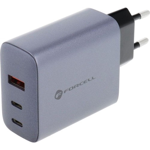 Ładowarka sieciowa Forcell F-Energy GaN Charger 65W Uniwersalna / USB-A / USB-C Wielka moc w wersji kompaktowej Malutka ładowarka F-Energy GaN Charger od Forcell z wykorzystaniem najnowszej technologii ładowania GaN zapewnia bezpieczne ładowanie dwóch urządzeń jednocześnie o mocy aż do 65W. Wykonana z wysokiej jakości tworzywa sztucznego jest odporna na uszkodzenia mechaniczne, dlatego świetnie sprawdzi się nie tylko w domu, ale i w podróży. Port 1x USB-A Port 2x USB-C Bez kabla w zestawie Kolor producenta: Grafitowo-czarna Szerokie zastosowanie Ładowarka, dedykowana zarówno smartfonom, jak i tabletom, wyposażona jest w dwa porty - USB-C oraz USB-A. Dzięki temu użytkownik ma możliwość ładowania urządzeń posiadających różne typy złączy. Obecność dwóch wejść umożliwia jednoczesne zasilanie kilku urządzeń jednocześnie zaoszczędzając trochę cennego czasu. Naładuj baterię do 100% nawet w ciągu 1 godziny. Ładowarka obsługuje szybkie ładowanie. Jest kompatybilna z Power Delivery (PD3.0), Quick Charge (QC4.0) , Super Fast Charging 2.0. Parametry godne uwagi Parametry wyjściowe: Wyjście USB-C 1/2: 5 V/3 A; 9 V/3 A; 12 V/3 A; 15 V/3 A; 20 V/3.25 A (65 W) Wyjście USB-C 1 + USB-C 2: 5 V/3 A; 9 V/3 A; 12 V/3 A; 15 V/3 A; 20 V/2.25 A (45 W) Wyjście USB-C 1 + USB-A: 5 V/3 A; 9 V/3 A; 12 V/3 A; 15 V/3 A; 20 V/2.25 A (45 W) Parametry wejściowe: Max 50-60Hz, 1.5A Więcej za mniej Ładowarki wykonane z azotku galu (GaN) oferują znacznie mniejsze rozmiary oraz wyższą efektywność i oszczędność energetyczną w porównaniu z tradycyjnymi zasilaczami. Dzięki swojej konstrukcji radzą sobie także lepiej z wyższym napięciem i temperaturą niż tradycyjne materiały, takie jak krzem, co minimalizuje ryzyko awarii i uszkodzeń do minimum. Dla bezpiecznego ładowania, polecamy korzystanie z ładowarek marki Forcell, które gwarantują nie tylko efektywne ładowanie, ale także bezpieczeństwo użytkowania.. Ładowarkę zmieścisz bez problemu w kieszeni plecaka, torebce, czy nawet kieszeni.