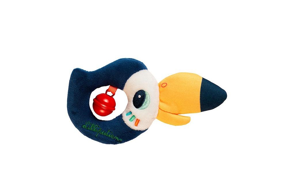 Pluszowa mini grzechotka z dzwoneczkiem z kolekcji Tukan Pablo to niebanalna aktywizująca zabawka dla niemowląt.