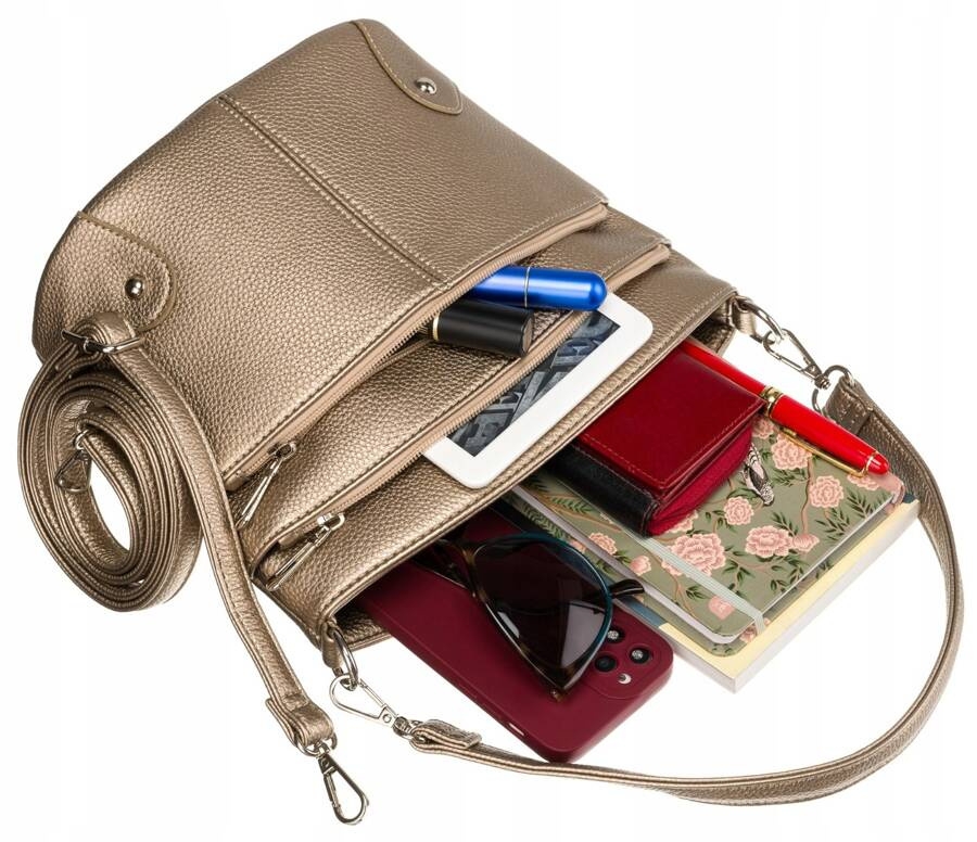 Torebka odszyta z wysokiej jakości skóry ekologicznej. W tym modelu zmieścisz wszystkie przedmioty, który musisz mieć zawsze przy sobie. Środek na podszewce. Zarówno uchwyt jak i pasek są zakończone karabińczykami. Dno torebki posiada ochronne nóżki.