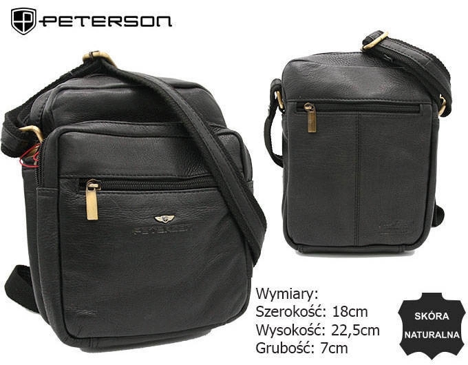 Skórzana listonoszka męska zamykana suwakami. Wyposażona w zewnętrzne, zasuwane kieszenie na froncie i rewersie. Zawieszona na długim, regulowanym pasku.