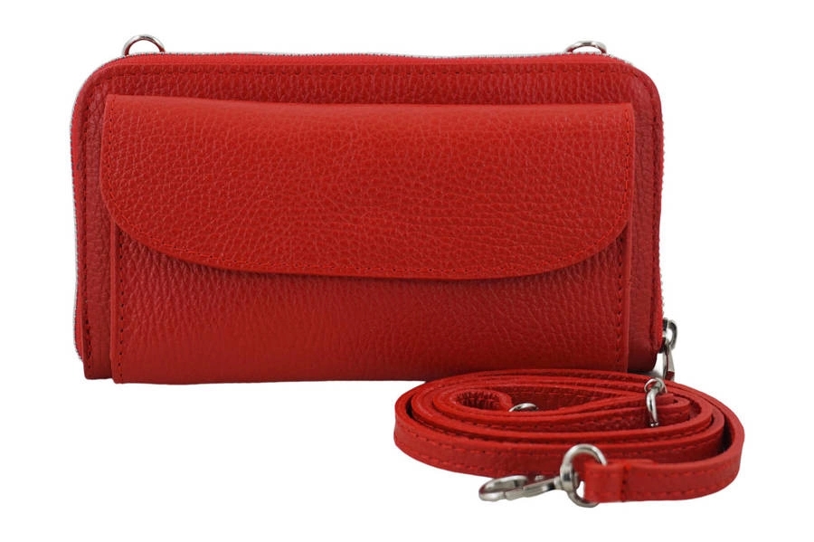 Portfel z etui na telefon ze skóry licowej czerwony jasny to również mini torebka po doczepieniu długiego i regulowanego paska. Idealna do każdej stylizacji, niezbędny dodatek codziennej garderoby. Niewielki rozmiar powoduje, iż zmieścisz etui w torebce lub możesz swobodnie nosić przewieszone przez ramię. Portfel z etui na telefon ze skóry licowej to propozycja dla kobiet poszukujących modnych akcesoriów galanterii skórzanej. Sklep internetowy oferuje wiele modeli torebek na różne okazje oraz portfeli skórzanych, a także szybką i profesjonalną obsługę Państwa zamówienia. Zapisz się do naszego newslettera i odbierz rabat -15% na pierwsze zakupy. Gwarantujemy produkty z wysokiej jakości skóry naturalnej, wykonanych z dbałością o szczegóły, z subtelnymi dodatkami oraz modelami z najnowszych kolekcji galanterii skórzanej Dla Pań i Panów.