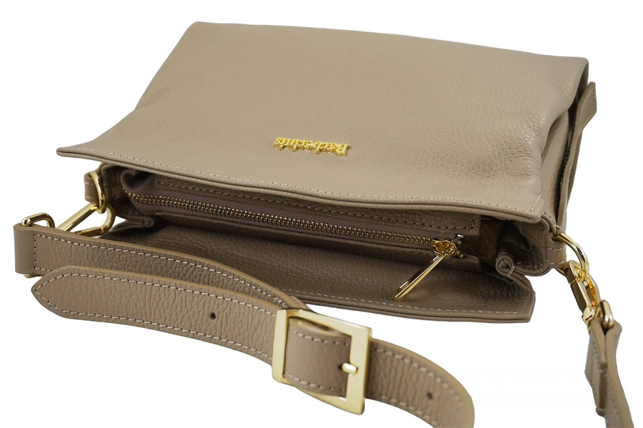 Funkcjonalna torebka damska na ramię w kolorze beżowym jest wykonana ze skóry naturalnej licowej. Wyróżnij stylizację niezwykle gustowną torebką ze skóry naturalnej dostępną w najnowszej kolekcji wygodnych i poręcznych listonoszek. Funkcjonalna torebka damska na ramię, którą wyróżnia złota klamra na regulowanym pasku oraz klasyczny fason, będzie idealna do każdej stylizacji, a także na specjalne okazje. W naszym asortymencie czekają na Ciebie skórzane torebki typu “listonoszka”, które dopasujesz zarówno do okazji, jak i Twojego stylu. Oferowane w naszym sklepie torebki zaprojektowano tak, aby mieściły portfel, telefon, klucze oraz drobne kosmetyki, a delikatne złote lub srebrne ozdoby podkreślały styl i charakter Twojego outfitu. Zachęcamy do zapoznania się ze szczegółową ofertą wyjątkowych torebek damskich skórzanych. Oferujemy również duży wybór portfeli ze skóry lakierowanej lub z kolorowym wnętrzem, zapakowanych w ozdobne, dopasowane pudełko.