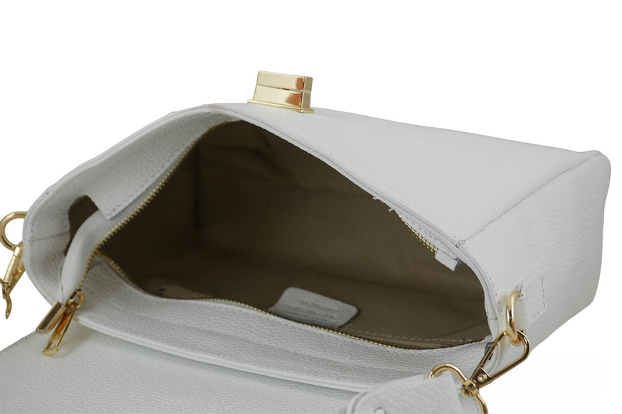 Skórzana torebka na ramię z plecionym paskiem w kolorze białym jest wykonana ze skóry naturalnej licowej. Propozycja z najnowszej kolekcji wyjątkowych torebek skórzanych, idealna do każdej stylizacji, a także na specjalne okazje - skórzana torebka na ramię z ozdobnym plecionym uchwytem oraz dodatkowym regulowanym paskiem dostępna w wielu kolorach. W naszym asortymencie czekają na Ciebie skórzane torebki typu “listonoszka”, które dopasujesz zarówno do okazji, jak i Twojego stylu. Oferowane w naszym sklepie torebki zaprojektowano tak, aby mieściły portfel, telefon, klucze oraz drobne kosmetyki, a delikatne złote lub srebrne ozdoby podkreślały styl i charakter Twojego outfitu. Zachęcamy do zapoznania się ze szczegółową ofertą klasycznych torebek damskich skórzanych. Oferujemy również duży wybór portfeli ze skóry lakierowanej lub z kolorowym wnętrzem, zapakowanych w ozdobne, dopasowane pudełko.