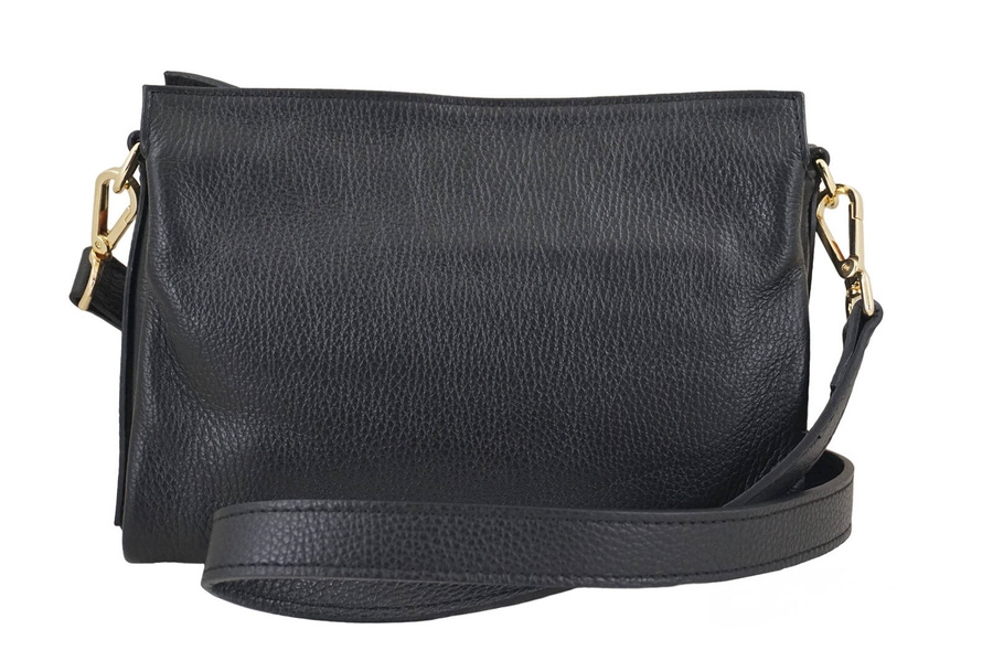 Funkcjonalna torebka damska na ramię w kolorze czarnym jest wykonana ze skóry naturalnej licowej. Wyróżnij stylizację niezwykle gustowną torebką ze skóry naturalnej dostępną w najnowszej kolekcji wygodnych i poręcznych listonoszek. Funkcjonalna torebka damska na ramię, którą wyróżnia złota klamra na regulowanym pasku oraz klasyczny fason, będzie idealna do każdej stylizacji, a także na specjalne okazje. W naszym asortymencie czekają na Ciebie skórzane torebki typu “listonoszka”, które dopasujesz zarówno do okazji, jak i Twojego stylu. Oferowane w naszym sklepie torebki zaprojektowano tak, aby mieściły portfel, telefon, klucze oraz drobne kosmetyki, a delikatne złote lub srebrne ozdoby podkreślały styl i charakter Twojego outfitu. Zachęcamy do zapoznania się ze szczegółową ofertą wyjątkowych torebek damskich skórzanych. Oferujemy również duży wybór portfeli ze skóry lakierowanej lub z kolorowym wnętrzem, zapakowanych w ozdobne, dopasowane pudełko.
