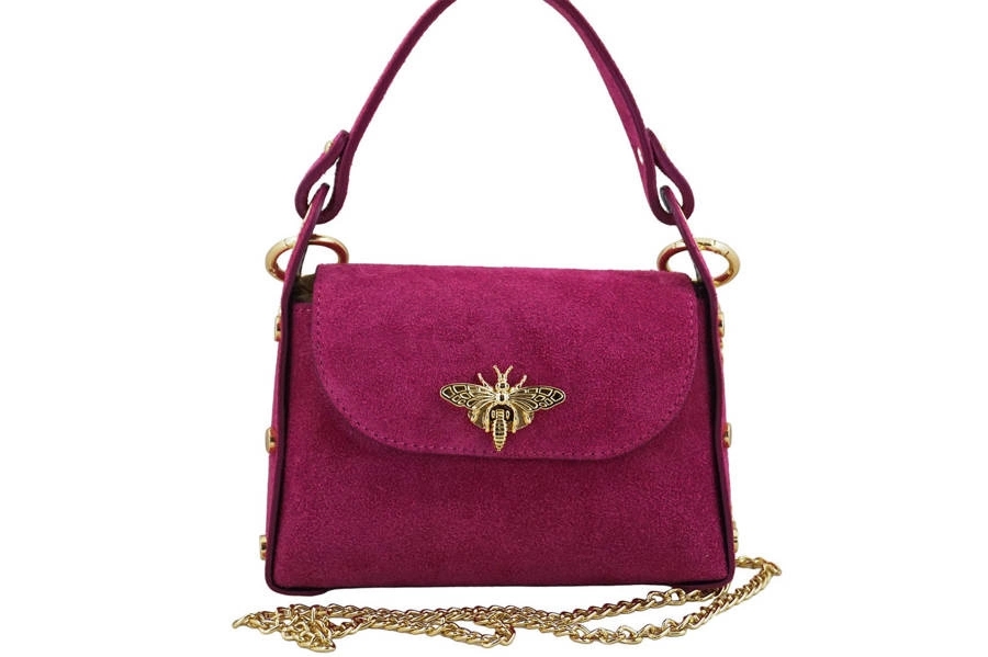 Zamszowe torebki wizytowe w kolorze fuksji zostały wykonane ze skóry naturalnej. Dostępne w najnowszej ofercie, w kategorii LISTONOSZKI, zamszowe torebki wizytowe ze złotymi nitami oraz modnym zapięciem to idealny dodatek wyjątkowej stylizacji. Nowoczesny design oraz wysokiej jakości skóra naturalna wyróżniają ten model torebki, która będzie idealnym uzupełnieniem ubioru na spotkanie z przyjaciółmi. Skorzystaj z oferty naszego sklepu - gwarantujemy wysoką jakość produktów, solidne wykonanie oraz duży wybór modeli torebek oraz portfeli. Chcesz być informowana o nowej kolekcji, uzupełnieniu magazynowym lub aktualnych promocjach? Zapisz się do naszego newslettera - wraz z informacją o najnowszej kolekcji otrzymasz rabat -15% na zakupy.
